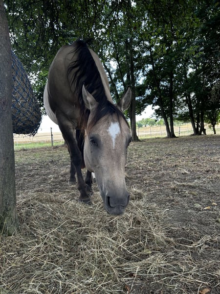 QH Stute - 12 Jahre - buckskin - ca. 1,49m Charakter und Ausbildung: - Charakterstark und sensibel zugleich - Kein Anfängerpferd - Liebt Bodenarbeit, Spaziergänge und läuft motiviert als Handpferd mit - Beherrscht Anfänge der klassischen Arbeit an der Hand, Seitengänge, Biegung, Rückwärts - Bestimmt auch für Freiarbeit und Zirkuslektionen zu begeistern - Auf Grund einer Verletzung nicht mehr sportlich belastbar - Leichte Ausritte für erfahrene, sichere Reiter möglich Haltung: - Offenstall oder Box mit täglichen Weidegang und im Sommer 24/7 Koppel gewohnt. - Kennt es auch mit Wallachen (sollten nicht hengstig sein) und Ponys zusammen zu stehen. Papiere: Half-Quarter-Horse - siehe letztes Bild. Weiteres gerne in einem persönlichen Gespräch. Ich suche für sie einen passendes liebevolles Zuhause, sie wird nicht an Händler verkauft.
