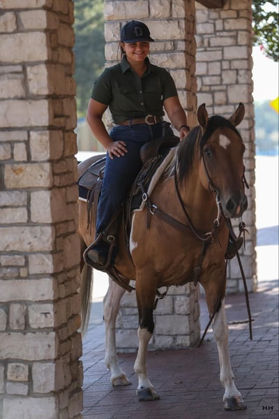 ONLINE AUCTION Place your bids at www.PlatinumEquineAuction.com Starting Bid $3500 Auction ends September 8th, 2024 Need a new saddle? Check out White Rock Saddles on our website or Facebook! Dutchess or “Peggys Gone N Dun It” is a 2014 model Dun Registered Paint Mare. Standing at 15H this mare is strong and stout. Dutchess got her name from her almost regal presence. She has a dignified, reserved personality and remains unbothered by her surroundings. She has proven to me time and time again that she is consistent and does all things in a disciplined, distinguished manner. Her personality isn’t the only thing to brag about though. She has a big kind eye that shows how kind and honest she is. She has nice legs and confirmation suitable for many disciplines. Her color is something extraordinary as well as a Dun Paint she has some striping on her legs and a very prominent dorsal stripe on her back. Dutchess also rides wonderfully. She will walk, trot, lope on a loose rein. She has a very nice stop and has slow correct spins in both directions. She is very soft in your hands and moves off your leg nicely. She will neck rein nicely or you can ride two handed if you prefer. You can move any part of her with your legs and she side passes from a woah, walk, and trot. Dutchess is not spooky and will go almost anywhere you tell her. She rides nicely on trails, the arena, or even traffic. She loads and unloads from the trailer very nicely without any hesitation. She stands nicely at the barn or the trailer to be groomed, saddled, and bathed. Dutchess does very well by herself or in a group and does not act marish around other mares or geldings. Dutchess has recently been seen by my dentist, farrier, and chiropractor and was an excellent citizen for all. She is what I call a “yes ma’am” type of horse. I ask for something and there doesn’t have to be a conversation about it she just says “yes ma’am”! She has been an amazing horse to have in my barn and a true joy to be around. For more questions or information please contact Sydney with SRS Training and Sales at (518) 935-8282. Dutchess is located in Granbury, TX and I’m happy to help arrange shipping anywhere in the US . ONLINE AUCTION Place your bids at www.PlatinumEquineAuction.com Starting Bid $3500 Auction ends September 8th, 2024 Need a new saddle? Check out White Rock Saddles on our website or Facebook!