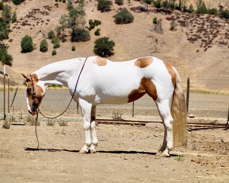 ONLINE AUCTION Place your bids at www.PlatinumEquineAuction.com Starting Bid $3500 Auction ends August 3rd, 2025 Need a new saddle? Check out White Rock Saddles on our website or Facebook Meet Bunny… If you’ve been searching for that rock-solid, “take-care-of-you” kind of horse… meet Bunny. She’s an 11-year-old palomino and white paint mare who stands 15 hands, but her heart and patience are ten feet tall. Bunny has safely carried everyone from nervous first-timers to adults who haven’t ridden since dial-up internet was a thing. She’s taught countless riders the ropes with confidence and zero drama. This is the kind of mare who makes you feel like you know what you’re doing—even if you don’t. In the arena, Bunny is soft and correct. She lopes smooth circles, stops and backs with ease, and has just enough turn-around to remind you she’s broke, not boring. She’s as dependable as the sunrise, with no buttons to accidentally push and no funny business to worry about. On the trail, she’s a machine. Bunny navigates rocky climbs, creek crossings, logs, brush, and steep hills like she’s part mountain goat. She’s seen it all—flags, traffic, tarps, sirens, pool noodles—and never bats an eye. Bunny will conquer any obstacle you throw her way. She’s also been used on the ranch and knows her way around cattle and branding. We trust her with our greenest riders because she’s basically a babysitter in a bridle—steady, kind, and always thinking ahead. And her ground manners? Impeccable. She leads, ties, bathes, hauls, stands for the vet and farrier, and settles into new places like she’s been there forever. She’s polite, friendly, not marish in the slightest, and frankly acts better than most geldings—and a good number of humans. If you’re looking for a safe, kind, all-around wonderful mare to be your trail buddy, confidence builder, family horse, or ranch partner, Bunny is ready to help take care of you. Located in Paicines, CA. Call Dina at Longhorn Ranch: 831-537-1915 Delivery available, but only if you promise to treat her like royalty. ONLINE AUCTION Place your bids at www.PlatinumEquineAuction.com Starting Bid $3500 Auction ends August 3rd, 2025 Need a new saddle? Check out White Rock Saddles on our website or Facebook