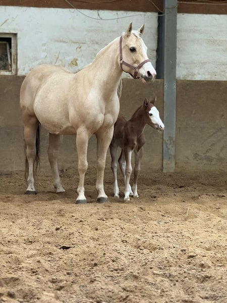 Balanced and relaxed broodmare for sale – a lovable partner also suitable as a leisure horse! The mare is currently kept in a paddock with turnout in a small herd. As a broodmare, she impresses with trouble-free pregnancies and uncomplicated foalings. In handling, she is calm and composed, both with children and adults. She has been backed, moves in all gaits, and proves to be a reliable leisure horse for trail riding.
