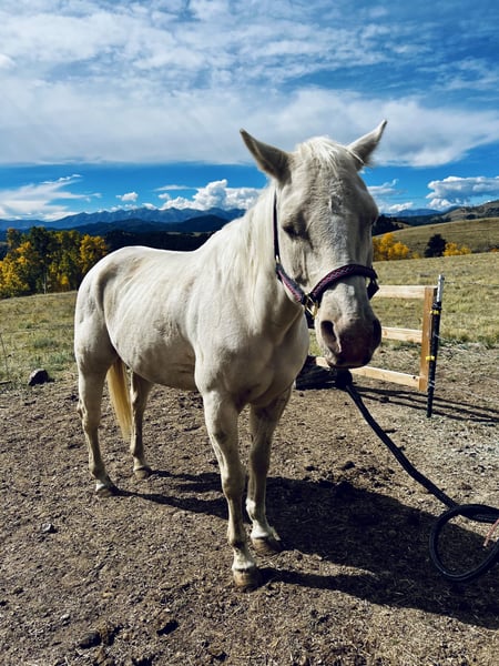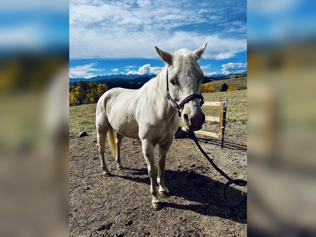 This beautiful white mare is looking for the right person to continue her journey. Since adopting her, my main focus has been improving her health and getting weight back on, and she’s come a long way. She can be ridden, lunged, and walked, but she will need intermediate-level work and consistency, along with access to a larger arena to continue her training. She does have a strong bond with her gelding son, so she would do best in a home with a larger pasture or the ability to separate them into different stalls to help her become more independent. She has a lot of potential for someone experienced who is looking for a rewarding project horse. Message me for more details, videos, or to come meet her!