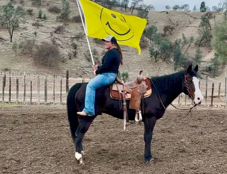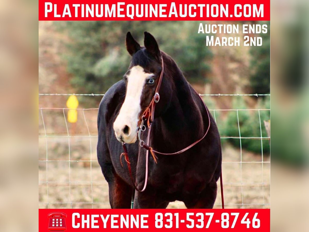 ONLINE AUCTION Place your bids at www.PlatinumEquineAuction.com Starting Bid $3500 Auction ends March 2nd, 2025 Need a new saddle? Check out White Rock Saddles on our website or Facebook! Bluebell is a head turner with her flashy dark coat, wavy mane, and stunning crystal blue eyes! This sweet mare is 14.3HH, 12 years old and a true beginners saint. Bluebell is the epitome of calm, cool, and safe. She has a more “whoa than go” way of her and is the easiest horse to get along with even for the true first time horse rider. Bell has zero spook, nothing phases this girl, and I mean nothing. You can ride her backwards, forward, and even underneath her and she will not even blink an eye. Flags, tarps, vehicles, dogs, and anything else you can think of are a walk in the park for her. Bell neck reins, knows her leads and is easy to direct. She is always patient and willing, listening to her rider. I would categorize her as a baby sitter, one you can depend on to take care of anyone riding or handling her. She handles time off and you can leave her off for months and she will never get fresh. I cannot express the level of safeness this mare is, it’s incomparable. She is excellent out on the trails, she loves water, and will cross anything in the path she’s going. She can be anywhere in the trail group comfortably, or just as content out on a ride alone. I truly feel like Bluebell will complete a family, looking for that once in a lifetime horse to trust with the kiddos, or that person that wants to pull a trusty steed out every once in a great while and take a relaxing ride. You can guarantee everyone you pull her out of her pen, you are handling one of the safest horses there is! She is located in Bitterwater, CA. Please contact Cheyenne Rey 831-537-8746 for any more info or make arrangements to come visit her! ONLINE AUCTION Place your bids at www.PlatinumEquineAuction.com Starting Bid $3500 Auction ends March 2nd, 2025 Need a new saddle? Check out White Rock Saddles on our website or Facebook!