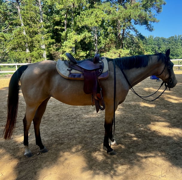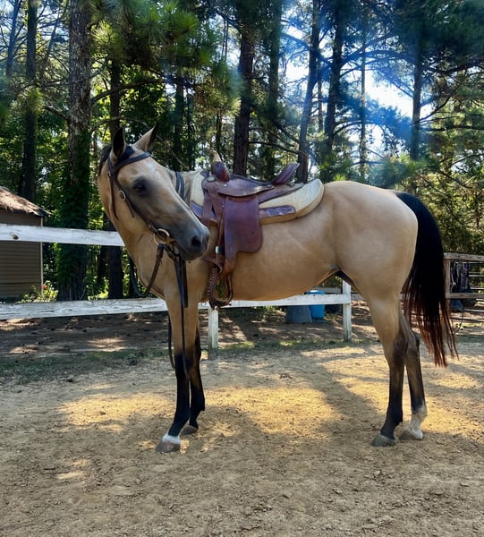 For Sale: Beautiful 15hh Buckskin Quarter Horse Mare – "Skyler" Located near Charlotte, North Carolina Meet Skyler, a stunning 13-year-old buckskin Quarter Horse mare standing 15 hands high. I’ve had the pleasure of owning her for the past three years but due to work commitments I do not have the time to give her anymore. Skyler has a sweet, willing nature and is not at all "mare-ish" – she’s an absolute joy to be around. She loves being on the trails and will happily step over logs and cross bridges. She’s also comfortable working in the arena and has solid basics under saddle in both English and western. She crossties, stands quietly for the farrier, and has excellent ground manners. Skyler is very low-maintenance: she’s barefoot with strong, healthy feet, can live out or be stalled, and only sees the vet for routine vaccinations. She is a sensitive and responsive ride, so not suitable for beginners/young kids so a confident intermediate to advanced rider will really enjoy her the most. Skyler would make a wonderful partner for someone looking for a reliable trail companion or a fun all-around horse with a great brain and lovely movement. - Priced in the mid four figures for a quick sale. - Located near Charlotte, NC Please—no time wasters. Serious inquiries only. We’ve had quite a few window shoppers. Please p.m. to schedule a viewing or call 980 288 2407.