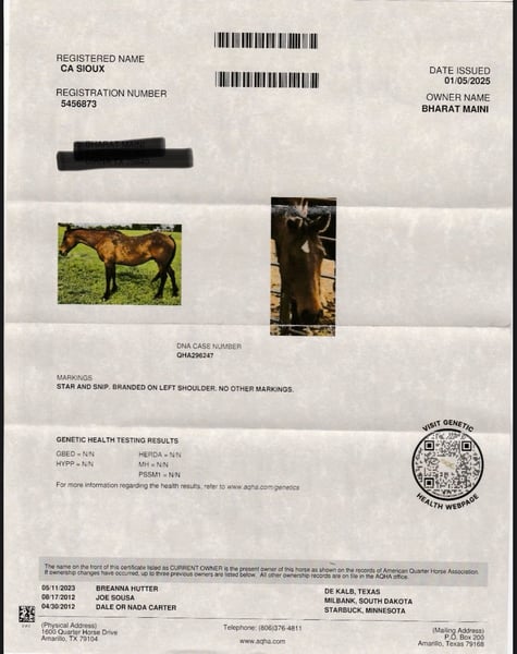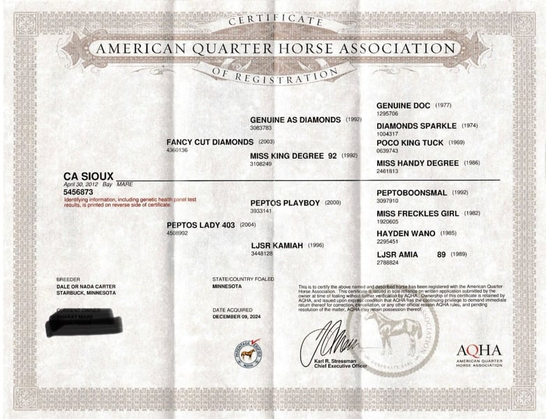 AQHA registered 13 year old broodmare with exceptional papers. Ca Sioux is broke to ride. She’s good for an experienced rider and she’s sound. She’s a great momma, she loads well, stands for farrier, stands tied, and loves to be groomed. AQHA papers and signed transfer in hand. Can deliver within a reasonable distance for extra fee.
