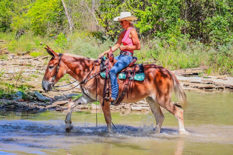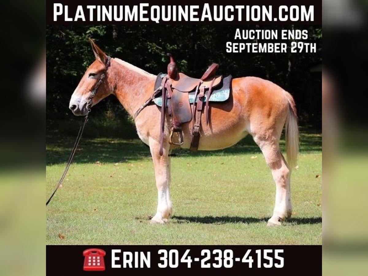 ONLINE AUCTION Place your bids at www.PlatinumEquineAuction.com Starting Bid $3500 Auction ends September 29th, 2024 Need a new saddle? Check out White Rock Saddles on our website or Facebook! This is June, a FAMILY, YOUTH, AND BEGINNER FRIENDLY SORREL MOLLY MULE. This mule is broke to work, ride, and she will hook double or single. She is 15.1 hands tall and 11 years old. She has been ridden by children to school and has been driven on the main roads in a top buggy, cart, and wagon. She is traffic safe and not spooky of fast traffic, tractors, four wheelers, or side by sides. She is quiet and very easy to catch. She stands to hook, harness, tack, mount, and groom. She stands tied, loads, bathes, and hauls with no fuss at all. This mule has been in the woods and used to skid logs, she has pulled the manure spreader, all hay machinery, and the big hay wagons. She is as honest as you get. She is very easy to ride and will lope off quietly with no hump and no buck. She is easy to stop, she handles both ears, and picks up all four feet. She will cross fast rushing water with confidence and rides out alone bravely. She will also ride in a group and doesn’t care if she is in the lead or bringing up the rear. She is fine with dogs trailing her heels. This mule is safe, gentle, and has lots of experience under saddle and under harness. She is B-R-O-K-E!! Don’t miss out on the hard to find kind of mule. Her new owners will appreciate how docile, civilized, and patient she really is. She is Located in Flemingsburg, KY. Contact HH Horses Erin 304-238-4155 with any questions. ONLINE AUCTION Place your bids at www.PlatinumEquineAuction.com Starting Bid $3500 Auction ends September 29th, 2024 Need a new saddle? Check out White Rock Saddles on our website or Facebook!