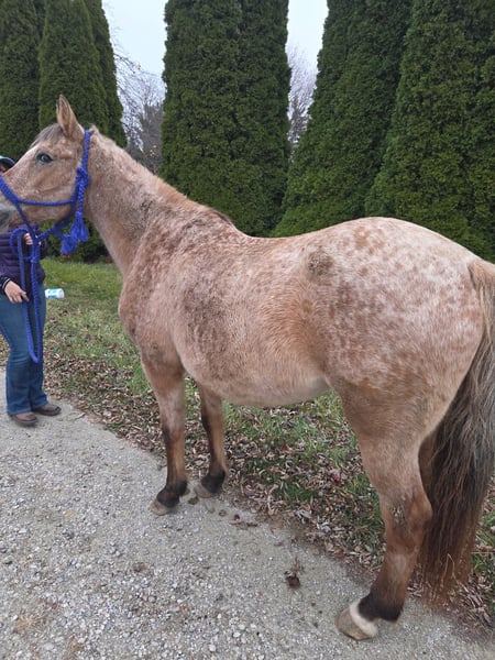 "AVAILABLE ON ONLINE HORSE AUCTION AT www DOT MagicHorseAuction DOT com BIDDING OPEN NOW thru TUESDAY | December 23RD! BUY IT NOW AVAILABLE! *Final price will be determined on auction site* CONSIGNOR CONTACT INFO: Sarah Collins 419-822-7526 LOCATION: 43465 " "Once in a lifetime ""true gem"" mare offered for your consideration is Zoey a breathtaking, rare exceptionally safe and beautifully minded 15 year old mare standing a stocky 14.2 hands. This is the kind of gorgeous roan mare everyone searches for, yet few ever find. She is bombproof in every senseva legitimate babysitter and the ultimate trail horse deluxe. With a quiet, non mareish demeanor and a naturally forgiving nature. She is more whoa than go, making her an ideal partner for riders of all ages and experience levels. This mare has an extremely good handle, is soft in the face and rides quietly on a true one hand neck rein. She is super uncomplicated, straight forward and easy to enjoy. Talk her up and go with no second thoughts. She can sit for months and rides off the same. She willingly takes care of her rider and instills immediate confidence. For the last 4 years Zoey was hauled all over the states for trail riding by a 75 year old lady. Equally exceptional on the ground she is great for clipping, bathing, loading, Farrier and very. Excellent manners with no vices, bad habits or maintenance. Goes in a mixed herd and low on the totem pole. Meets you at the gate and will stall perfectly with no cribbing or pawing. She rides alone or in a group with no buddy or barn sour behaviors. She is unfazed by new environments, traffic, obstacles and everyday commotion. She is the kind of horse you can hand to anyone and know they will be safe. A steady, uncomplicated partner suited for family use, trail riding, 4-H, or confidence building. Zoey has also had several foals. She is an excellent mother and foals easily. She is the kind of mare families keep forever. Horses of this caliber are rarely available and never last long. She is truly a top tier, confidence giving partner seeking an exceptional home that will appreciate her remarkable mind and heart. Zoey received a health exam, Coggins and lameness exam with flexion on 12-3-25. Her findings are attached. She does show restriction of her pupils. No clinical signs and has full sight. Her feet were trimmed 12-5-25. *Young Boy riding in video is a VERY INEXPERIENCED RIDER and this video depicts his first time ever meeting ""Zoey"" Contact 419 822 7526 for any and all questions on this amazing mare. Zoey would make the best Christmas present! "