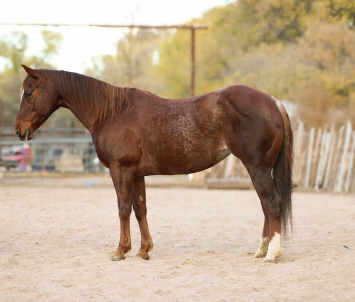 ONLINE AUCTION Place your bids at www.PlatinumEquineAuction.com Starting Bid $3500 Auction ends November 24th, 2024 Need a new saddle? Check out White Rock Saddles on our website or Facebook! “Lena Lil Leo” aka Beth is an AQHA registered 2011 model mare standing 14.2hh, and a great granddaughter of “Smart Little Lena”!! Not only is Beth an absolute joy to have around, she’s also a blast to ride! Whether you’re looking to hit the trails or the arena, Beth is your gal! This mare is absolutely surefooted, safe, and fun to ride down the trail! Rough rocky terrain, flowing rivers, fallen trees, waist high grass, you name it and Beth will go through it! Beth will mosey on through the brush with ease! If hitting the trails isn’t quite your style, Beth will take just as good care of you in the arena! This well versed mare will walk, trot, and lope both directions on a loose rein, has a great neck rein and a huge stop. We have taken Beth to tons of team pennings, ranch-versatility shows, and gymkhanas, and she never ceases to amaze us. No matter what job you throw at this gorgeous little mare, she will take care of you and try her heart out. Good to groom, saddle, bathe, clip, and shoe! Freshly shod and has been recently floated! Comes with an UTD coggins and health. Transport can easily be arranged anywhere in the US! Located in Camp Verde, AZ. Contact D/C Equine Dallas 804-822-2233. ONLINE AUCTION Place your bids at www.PlatinumEquineAuction.com Starting Bid $3500 Auction ends November 24th, 2024 Need a new saddle? Check out White Rock Saddles on our website or Facebook!