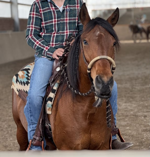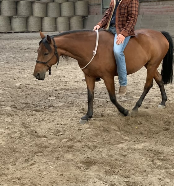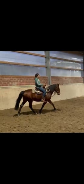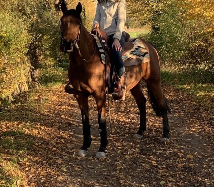 We are selling our Quarter Horse x Andalusian mare, Billy, born in 2011. After a year and a half, we have made the difficult decision to find her a more suitable home, as despite our efforts, the harmony between us has not developed as we had hoped. She is a confident horse with a lot of expression and personality. At the same time, it seems she has had positive experiences in the past – she is particularly sensitive in the stable. She also appears initially cautious around men. However, once she has built trust, she is a very affectionate, attentive horse that genuinely enjoys seeing her handler. Details: - Mare born in May 2011 (13 years old) - Height: 14.1 hh - Color: bay with a small white star - Pedigree: Quarter Horse x Andalusian - Approximately 90% blind in one eye, but this does not affect her performance - Slight saddle resistance Riding: We would say she is not suitable for beginners, as she definitely needs an experienced, calm rider with a gentle hand to ensure both are happy. Her tongue is sensitive/injured, so a soft, fair contact is especially important. She has basic reining training but has mostly been ridden for leisure by us. Due to family reasons, she has recently not been in regular work. Tempo & Terrain: If not properly challenged, she can become quite quick on some days and may even want to race. However, with regular work, she maintains a normal tempo and responds well. In the field, she generally enjoys hacking but is not 100% trail-safe. In certain situations, she may become stressed and restless – therefore, only suitable for riders who can handle such moments confidently. Otherwise, she is quite brave and not easily spooked. Herd Behavior: In the pasture, she is herd-compatible but needs plenty of space. In smaller paddocks, she should ideally be kept alone. She is very dominant but can coexist with geldings in the right setting. --- It is important to us that she finds a loving, experienced home where her sensitivity is understood, and she is given security through calm, clear, and fair handling. We wish for her a new home that may be a better fit – so she can truly find her people and feel at home there.