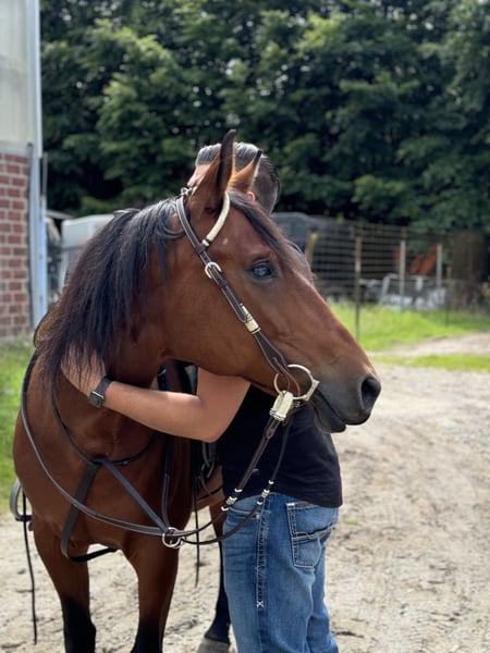 Wij verkopen onze Quarter Horse x Andalusiër merr Billy, geboren in 2011. Na anderhalf jaar hebben we er, met pijn in ons hart, voor gekozen om een geschikter onderkomen voor haar te zoeken, omdat de harmonie tussen ons, ondanks onze inspanningen, niet helemaal is geworden zoals we hadden gehoopt. Ze is een zelfverzekerde paard met veel uitdrukking en persoonlijkheid. Tegelijkertijd lijkt het alsof ze in het verleden niet alleen goede ervaringen heeft opgedaan – vooral in de box toont ze zich zeer gevoelig. Ook mannen lijken haar aanvankelijk wat voorzichtiger te maken. Maar zodra ze vertrouwen heeft, is ze een zeer lieve, aanhankelijke paard dat oprecht blij is om haar mens te zien. Belangrijke gegevens • Merrie geboren in mei 2011 (14 jaar) • Stockmaat: 1,49 m • Kleur: bruin met een kleine witte bles • Afstamming: Quarter Horse x Andalusiër • Op ongeveer 90% blind aan één oog, maar dat belemmert haar niet. • Licht Sattelzwang Ruiterschap Wij zouden zeggen dat ze niet geschikt is voor beginners, omdat ze zeker een ervaren, rustige ruiter met een zachte hand nodig heeft, zodat beiden gelukkig kunnen zijn. Haar tong is helaas gevoelig/beschadigd, daarom is een fijne, rechtvaardige aanleuning extra belangrijk. Ze heeft een basisopleiding in reining, maar is vooral recreatief gereden door ons. Vanwege familieomstandigheden is ze de laatste tijd niet regelmatig getraind. Tempo & Buitenritten Als ze niet goed uitgedaagd wordt, kan ze op sommige dagen vrij snel worden en zelfs graag gaan rennen. Maar als ze regelmatig gewerkt wordt, heeft ze een normaal tempo en werkt ze goed mee. In het terrein gaat ze over het algemeen graag, maar is niet 100% terreinvast. In bepaalde situaties kan ze stressreacties vertonen, waardoor ze onrustig wordt – daarom alleen voor ruiters die zulke momenten kalm kunnen opvangen. Verder is ze vrij schrikvast. Herde Op de wei is ze goed in de groep, maar heeft veel ruimte nodig. Op kleine paddocks kan ze het beste alleen staan. Ze is zeer dominant, maar kan, onder de juiste omstandigheden, ook samen met hengsten staan. ⸻ Het is voor ons belangrijk dat ze in liefdevolle, ervaren handen komt die haar sensitiviteit begrijpen en haar met rust, duidelijkheid en een rechtvaardige rijstijl veiligheid bieden. We wensen haar een nieuw thuis dat misschien nog wat beter past – zodat ze haar mensen kan vinden en daar echt haar plek kan vinden.