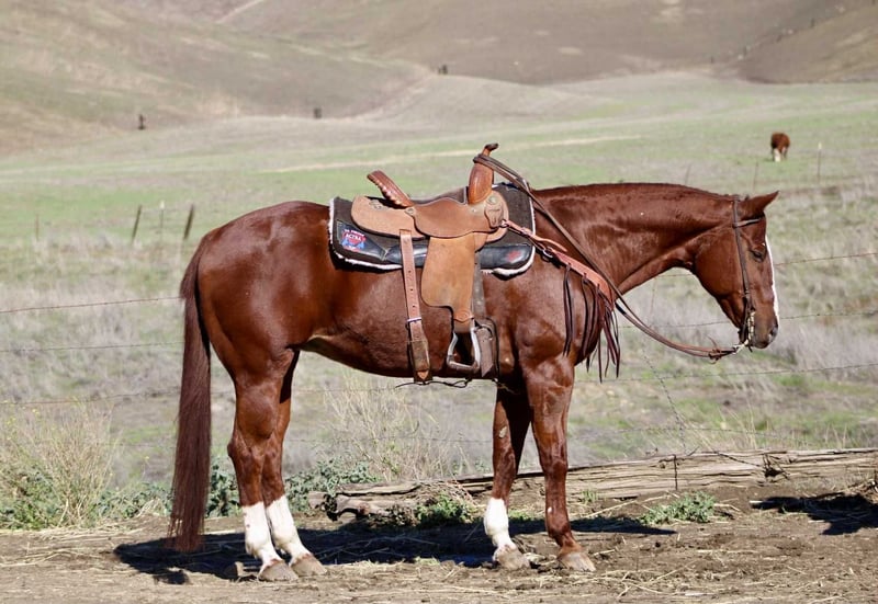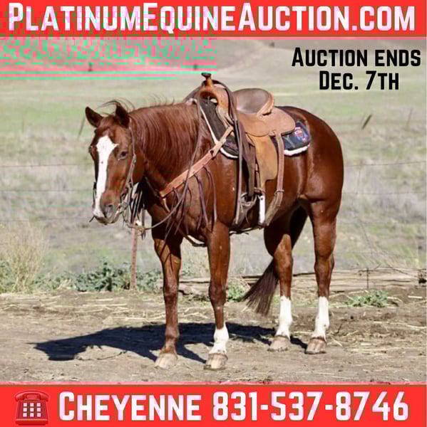 ONLINE AUCTION Place your bids at www.PlatinumEquineAuction.com Starting Bid $3500 Auction ends December 7th, 2025 Need a new saddle? Check out White Rock Saddles on our website or Facebook Ada is a thick, stout, 14.3 hand sorrel mare with the perfect mix of athleticism, brains, and a calm, safe attitude. At 14 years old, she has seen and done more than most horses ever will, and she rides just as pretty as she looks. This mare is a true ranch hand. She has been used extensively on the ranch, travels out with confidence, and is sure-footed as a goat no matter how steep or rough the terrain. Ada knows how to use her body, handles hills with ease, and has unmatched stamina, she’ll go all day without quitting. Beyond ranch work, Ada is finished and solid to rope on out of the box, and is suitable for any rider who wants something dependable and seasoned. Nothing fazes her. She has zero spook, has seen absolutely everything, and takes it all in stride. She has carried flags at rodeos, competed on trail courses, and will cross anything you point her at on the trail. Ada loves cows and would be the ideal partner for a cowkid wanting to keep up with Dad, a confident adult rider, or someone who wants a competitive cross country trail horse. She is the perfect mix of speed, safeness, and calm, hard to find in one package. She hauls like a dream, gets along with anyone, and has excellent manners. She clips, stands for the farrier, and is easy to handle in every way. If you’re looking for a solid, dependable, all-around mare with the heart and ability to do any job, Ada is the one. She is located in Bitterwater, CA for more info contact Cheyenne at 831-537-8746. ONLINE AUCTION Place your bids at www.PlatinumEquineAuction.com Starting Bid $3500 Auction ends December 7th, 2025 Need a new saddle? Check out White Rock Saddles on our website or Facebook
