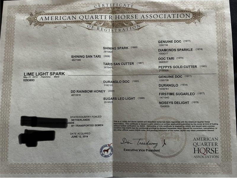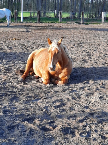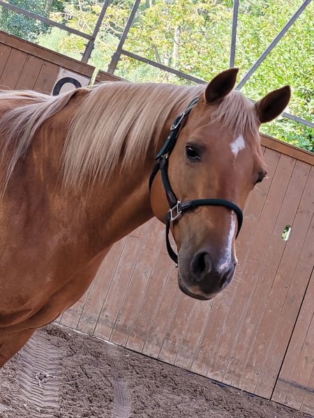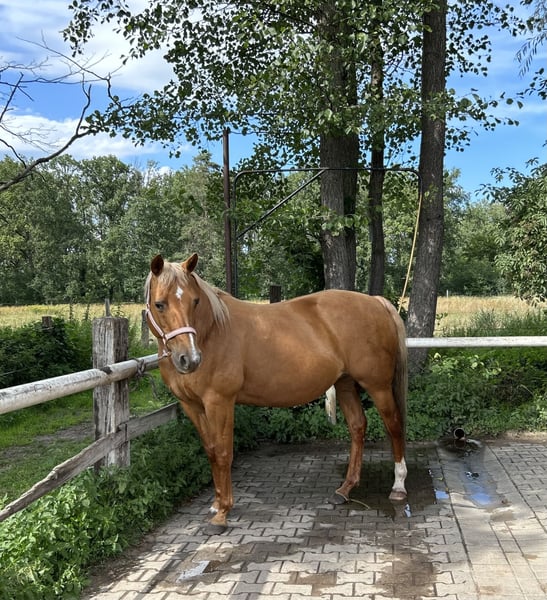 Freizeitreiter und Züchter Achtung, langer Text 😅, aber ich versuche, meine Stute so genau wie möglich und ehrlich zu beschreiben, um den besten Platz für sie zu finden Quarter Horse geb. Mai 2010 Stockmaß 1,50m Stammbaum siehe Foto (u.A. Shining Spark) Leider kommt es im Leben oft anders, als man es sich vorgestellt hat. Aus diesem Grund bin ich gezwungen, meine Stute nach 11 Jahren zu verkaufen. Ich habe sie vierjährig angeritten direkt beim Züchter gekauft. Dreijährig hatte sie ein großrahmiges Hengstfohlen. Sie ist nicht stutig, zickt nicht rum. Bei mir war sie Freizeitpferd. Der Sport stand nie im Vordergrund. Trotzdem hatten wir regelmäßig Training und Beritt. Sie ist gut auf Freizeitniveau ausgebildet, geht alleine und in der Gruppe ins Gelände. Sie ist eine liebe verschmuste Seele, viel Druck und Zwang beim Reiten verträgt sie nicht. Sie ist zu 100% ehrlich im Umgang. Sie testet den Reiter nicht aus, sondern versucht, sich ab Minute 1 auf den Reiter einzustellen. (Sie wurde z. B. auch von der 8 jährigen Tochter einer Stallkollegin in allen drei Gangarten geritten.) Trotzdem ist sie ein waches Pferd. Sie macht auch mal einen Hüpfer zur Seite. Durchgegangen ist sie noch nie. Im Gelände hat sie mehr Go als auf dem Platz. Daher wird sie nicht an Anfänger oder unsichere Reiter angegeben. Ich suche für sie einen geübten entspannten Freizeitreiter, der ein ausgeglichenes Verhältnis zwischen notwendiger Gymnastizierung und Spaß im Gelände und/oder in der Bodenarbeit bietet. Wir haben gefühlt alles an Bodenarbeit gemacht. Freiarbeit, Blau/gelb, Equikinetik, Doppellonge, Freilauf, Gelassenheitstraining etc. etc. Sie ist immer bemüht, mitzuarbeiten. Man kann mit ihr stundenlang am Halfter entspannt spazieren gehen. Sie war noch nie lahm. Sie läuft barfuß, hatte noch nie Eisen. Beim Schmied steht sie artig. Es gibt zwei kleine gesundheitlichen Befunde, die sie aber im Alltag nicht einschränken. -Eine Untersuchung in einer Klinik mittels eine Endoskopie unter Belastung ergab, dass sie eine Stelle in der Luftröhre hat, an welcher die Seitenwände der Luftröhre etwas verdickt sind. Wenn sie mit zu enger Ganasche geritten wird, wird die Luftröhre an dieser Stelle sehr eng und sie bekommt Probleme mit der Atmung. Das hört man dann. Da es sich dabei um ein rein „mechanisches“ Problem handelt, sollte man entsprechend reiten und ihr Platz lassen an der Ganasche. -Im aktuellen Stall, scheint sie auf irgendeine Pflanze leicht allergisch zu reagieren. An manchen Tagen mit hoher allergenener Belastung, atmet sie etwas schwerer. An anderen Tagen ist null Komma null zu hören. Ich füttere zwischendurch Plantagines C, damit läuft es super. Ihre Leistungsfähigkeit wird auch dadurch nicht eingeschränkt. Hänger fahren, findet sie unnötig. Ich habe im Laufe der Jahre immer wieder Hänger Training gemacht. Nach 2-3 Übungsstunden, konnte ich sie dann von unten alleine auf den Hänger schicken. In Ermangelung von regelmäßigem Üben, fängt man aber nach langen Pausen wieder von vorne an. Sollte regelmäßiges Fahren angestrebt sein, sollte das auch regelmäßig geübt werden im neuen Zuhause. In einen Trailer für drei Pferde mit Stufe hinten und Ausgang vorne, ging sie problemlos ohne zögern. Lkw wurde noch nicht versucht. Sie mag diese engen zweier-Anhänger einfach nicht gerne. Sie wird nur in eine Offenstall Haltung abgegeben. Aktuell steht sie in einem Offenstall mit 24/7 Heu mit Netzen. Sie ist leichtfuttrig. Das gesamte Zubehör kann gegen Aufpreis erworben werden. Sie steht nordwestlich von Berlin. Um Probereittourismus vorzubeugen, setze ich für ein Probereiten 30 € an. Dies würde bei Kauf natürlich verrechnet. Ich kann sie mir auch in der Zucht vorstellen. Bei Interesse bitte ich um eine kurze persönliche Vorstellung. Danke!