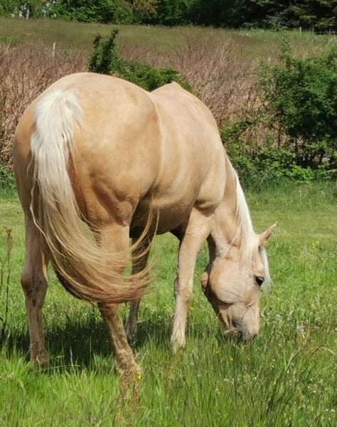 Pearl is a beautiful Quarter Horse mare, rated as an 8.15 foal at birth. Her daughter by Dunits Eternal Flame also received an 82.68 rating as a premium foal with 1A distinction. Pearl is by AQHA Champion CL Silent Badger out of a Dun Commander mare. She is a friendly, people-oriented mare with a strong "will to please." Pearl enjoys being groomed and petted, without becoming intrusive. She was lightly backed and started under saddle at the age of four for leisure riding, and she enjoys trail riding 2-3 times a week. Due to her owner's health issues, Pearl is looking for a loving new home. Private sale, only to private individuals.