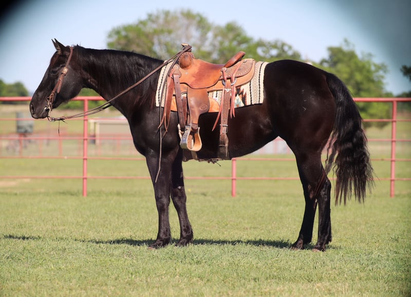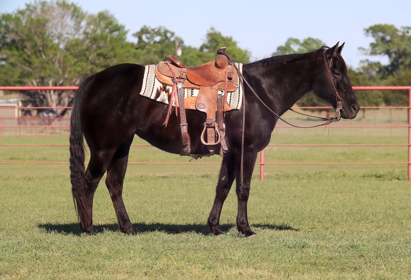 Dotty, yegua AQHA negra de 15 años y 1.65 m de altura.
