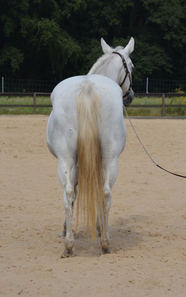 **Anuncio de venta: Yegua American Quarter Horse** Se vende una hermosa yegua American Quarter Horse, nacida en 2010. Esta robusta yegua torda tiene una alzada de 153 cm y destaca por su carácter amistoso y sus versátiles talentos. Ha sido exhibida con éxito en Reining, Ranch Riding y Western Riding. En los últimos años ha sido yegua de cría y nos ha dado excelentes potros. Debido a su parentesco con nuestro semental, ahora busca un nuevo hogar. Es muy sociable, una buena madre y los partos siempre han sido sin complicaciones. La última imagen muestra la descendencia de la yegua. Si está interesado o necesita más información, estoy a su disposición. Las visitas son posibles previa cita. Se vende como yegua de compañía o de cría.