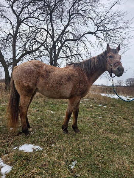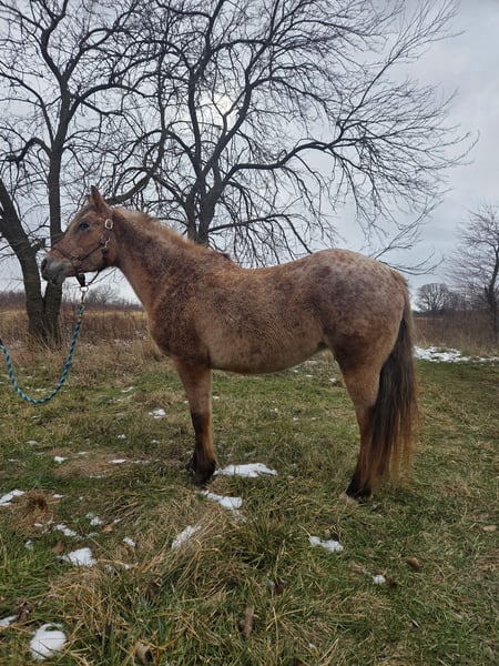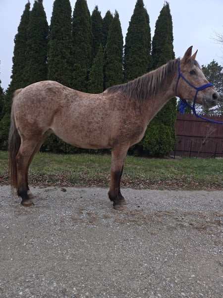 "AVAILABLE ON ONLINE HORSE AUCTION AT www DOT MagicHorseAuction DOT com BIDDING OPEN NOW thru TUESDAY | December 23RD! BUY IT NOW AVAILABLE! *Final price will be determined on auction site* CONSIGNOR CONTACT INFO: Sarah Collins 419-822-7526 LOCATION: 43465 " "Once in a lifetime ""true gem"" mare offered for your consideration is Zoey a breathtaking, rare exceptionally safe and beautifully minded 15 year old mare standing a stocky 14.2 hands. This is the kind of gorgeous roan mare everyone searches for, yet few ever find. She is bombproof in every senseva legitimate babysitter and the ultimate trail horse deluxe. With a quiet, non mareish demeanor and a naturally forgiving nature. She is more whoa than go, making her an ideal partner for riders of all ages and experience levels. This mare has an extremely good handle, is soft in the face and rides quietly on a true one hand neck rein. She is super uncomplicated, straight forward and easy to enjoy. Talk her up and go with no second thoughts. She can sit for months and rides off the same. She willingly takes care of her rider and instills immediate confidence. For the last 4 years Zoey was hauled all over the states for trail riding by a 75 year old lady. Equally exceptional on the ground she is great for clipping, bathing, loading, Farrier and very. Excellent manners with no vices, bad habits or maintenance. Goes in a mixed herd and low on the totem pole. Meets you at the gate and will stall perfectly with no cribbing or pawing. She rides alone or in a group with no buddy or barn sour behaviors. She is unfazed by new environments, traffic, obstacles and everyday commotion. She is the kind of horse you can hand to anyone and know they will be safe. A steady, uncomplicated partner suited for family use, trail riding, 4-H, or confidence building. Zoey has also had several foals. She is an excellent mother and foals easily. She is the kind of mare families keep forever. Horses of this caliber are rarely available and never last long. She is truly a top tier, confidence giving partner seeking an exceptional home that will appreciate her remarkable mind and heart. Zoey received a health exam, Coggins and lameness exam with flexion on 12-3-25. Her findings are attached. She does show restriction of her pupils. No clinical signs and has full sight. Her feet were trimmed 12-5-25. *Young Boy riding in video is a VERY INEXPERIENCED RIDER and this video depicts his first time ever meeting ""Zoey"" Contact 419 822 7526 for any and all questions on this amazing mare. Zoey would make the best Christmas present! "
