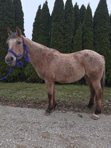 VERFÜGBAR bei der Online-Auktion unter www.MagicHorseAuction.com GEBOTEN wird jetzt bis Dienstag, 23. Dezember! SOFORTKAUF MÖGLICH! *Der endgültige Preis wird auf der Auktionsseite festgelegt* VERKÄUFER-KONTAKT: Sarah Collins, 419-822-7526 STANDORT: 43465 --- Ein einmaliges „Once-in-a-Lifetime“-Juwel – eine Stute, die Sie unbedingt kennenlernen sollten: Zoey, eine atemberaubende, seltene und außergewöhnlich sichere sowie gutmütige 15-jährige Stute, die mit einem kräftigen Stockmaß von 14,2 Händen steht. Diese wunderschöne Roan-Stute ist genau die Art von Pferd, nach der jeder sucht, doch nur wenige finden sie tatsächlich. Zoey ist in jeder Hinsicht bombensicher, eine echte Babysitterin und der perfekte Trailpartner deluxe. Mit ihrer ruhigen, nicht marehaften Ausstrahlung und ihrer natürlichen Verzeihungsbereitschaft ist sie mehr „Stop“ als „Go“, was sie zu einer idealen Partnerin für Reiter aller Alters- und Erfahrungsstufen macht. Sie hat eine sehr gute Handhabung, ist im Gesicht weich und reitet ruhig auf einer echten Ein-Hand-Nackenrein. Sie ist äußerst unkompliziert, direkt und leicht zu genießen. Man kann sie loben und ohne Bedenken losreiten. Selbst nach mehreren Monaten Stillstand startet sie stets problemlos. Sie kümmert sich freiwillig um ihren Reiter und vermittelt sofort Vertrauen. In den letzten vier Jahren wurde Zoey von einer 75-jährigen Dame quer durch die USA für Trailriding transportiert. Auch am Boden ist sie außergewöhnlich: Sie ist hervorragend beim Kämmen, Baden, Aufsatteln, beim Hufschmied und sehr manierlich. Sie hat keine Macken, schlechten Gewohnheiten oder gesundheitlichen Probleme. Sie lebt in einer gemischten Herde und steht unten im Rang. Sie begrüßt Sie an der Weide und bleibt ruhig im Stall, ohne zu beißen oder zu scharren. Sie reitet sowohl allein als auch in der Gruppe, ohne bei anderen Pferden oder beim Stall zu sourcen. Neue Umgebungen, Verkehr, Hindernisse und Alltagslärm machen ihr nichts aus. Sie ist die Art Pferd, die man jedem anvertrauen kann – sicher und zuverlässig. Ein ruhiger, unkomplizierter Partner, ideal für Familien, Trailriding, 4-H-Programme oder zum Aufbau von Selbstvertrauen. Zoey hat auch mehrere Fohlen bekommen. Sie ist eine ausgezeichnete Mutter und bringt ihre Fohlen mühelos zur Welt. Sie ist die Art von Stute, die Familien ein Leben lang behalten. Pferde dieses Kalibers sind selten zu finden und verkaufen sich kaum lange. Zoey ist wirklich eine Top-Partnerin, die Sicherheit und Vertrauen schenkt, und sucht ein außergewöhnliches Zuhause, das ihre bemerkenswerte Intelligenz und ihr Herz zu schätzen weiß. Zoey wurde am 03.12.2025 einem Gesundheits- und Coggins-Test sowie einem Lahmheitstest mit Flexion unterzogen. Die Ergebnisse sind beigefügt. Sie zeigt eine Pupillenverengung, jedoch keine klinischen Anzeichen und hat volles Sehvermögen. Ihre Hufe wurden am 05.12.2025 getrimmt. *Das junge Mädchen im Video ist ein SEHR UNERFAHRENER REITER, und das Video zeigt seine allererste Begegnung mit „Zoey“.* Für Fragen zu dieser außergewöhnlichen Stute rufen Sie bitte unter 419-822-7526 an. Zoey wäre das perfekte Weihnachtsgeschenk!