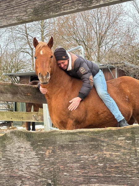 Josy ist eine absolut liebenswerte, menschenbezogene und zuverlässige Stute, die in jeder Hinsicht überzeugt. Sie ist schmiede- und verladefromm, läuft barhuf, ist herdenverträglich und wurde solide grundausgebildet. Im Gelände zeigt sie sich aufmerksam, nervenstark und verkehrssicher – eine Stute, die man sofort ins Herz schließt. Aktuell ist Josy tragend von Arc Surprise Oak, einem erfolgreichen und hochkarätig gezogenen Hengst, dessen Abstammung in der Westernszene einen hervorragenden Ruf genießt. Das Fohlen wird zum 01.05.2026 erwartet. Ein Verkauf mit oder ohne Fohlen ist möglich; bei Abgabe ohne Fohlen reduziert sich der Preis entsprechend. Auf Wunsch kann Josy bei uns vor Ort erneut besamt werden – sie hat bisher immer problemlos beim ersten TG-Versuch aufgenommen. Josy ist völlig unverbraucht und hat bei uns bereits zwei wunderschöne Fohlen in den Sonderfarben Red Roan und Palomino Roan zur Welt gebracht. Sie geht in ihrer Mutterrolle voll auf, beide Geburten verliefen unkompliziert, und ihre Nachzucht ist gesund, korrekt gebaut und charakterlich ein Traum. Stute und Fohlen sind DQHA-prämiert. Beide bisherigen Fohlen leben noch bei uns auf dem Hof und können besichtigt werden. Wir suchen für Josy einen Bestplatz, an dem sie geliebt und wertgeschätzt wird. Sie wird schweren Herzens wegen Zuchtaufgabe abgegeben. Für weitere Informationen oder einen Besichtigungstermin rufen Sie uns gerne an.