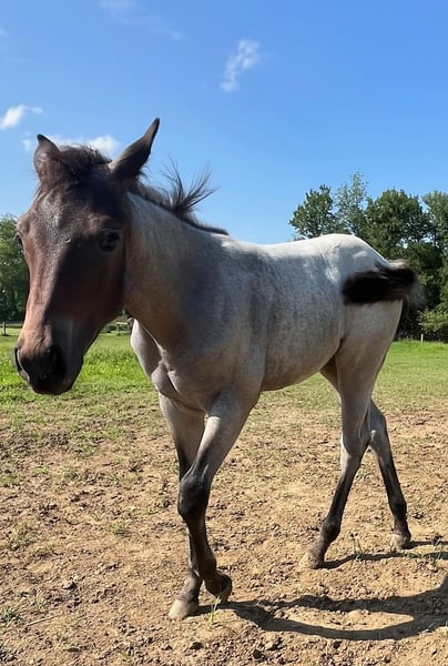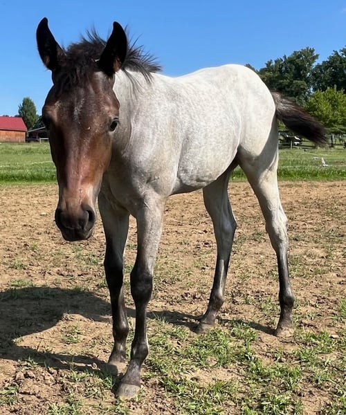 Beautiful Bay Roan yearling filly. Registered AQHA. In your pocket and loves attention. Halter broke and easy to handle. Stands perfectly for farrier. Granddaughter of Shining Spark.