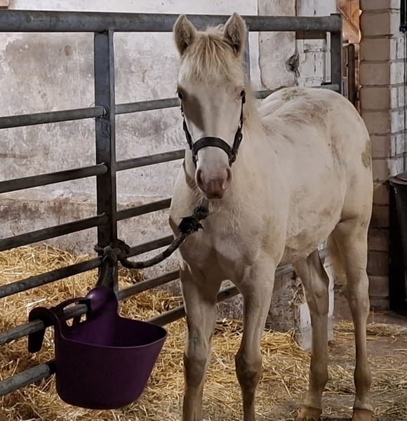 Mooie smokey cream dun jaarling D-pony merrie. Wegens annulering van in opdracht aangekochte merrie, nu beschikbaar. Ella is een mooie stevige Quarter Pony, ingeschreven bij het Zuchtverband für Schecken und Spezialrassen, in Duitsland. Haar kleur is smokey cream dun, homozygoot voor zwart en cream (zie kleuruitslag) Verwachtte eindmaat rond 147cm. Ella wordt in februari ge-ent, met alle andere paarden mee. Bij eerdere verkoop wordt ze ge-ent voordat ze naar nieuwe huis vertrekt. Ella is bij stamboekopname gekeurd met een 8, is up-to-date met hoefsmid en ontwormen. Heeft een pedigree en paardenpaspoort, alsook volledige kleurtestuitslag. Kent transport, hoefsmid, dierenarts, meelopen. Slaat niet, bijt niet. Wel beetje schuchter in begin. Maar geen angst of nerveus gedrag, niet in groep en niet in omgang. Leeft hier 24/7 buiten in groepje leeftijdsgenoten. Is hier laagste in rang. Transport naar nieuwe eigenaar, binnen 200km, bij koopprijs inbegrepen. Verdere afstanden voor een hele redelijke bijdrage in onkosten. Serieuze, nette reacties krijgen een serieus, net antwoord. AUB bij voorkeur per Whatsapp +31610271771 EN-DE-NL Anonieme, random vragen alhier worden niet beantwoordt. Uw voornaam en telefoonnummer wordt gewaardeerd.