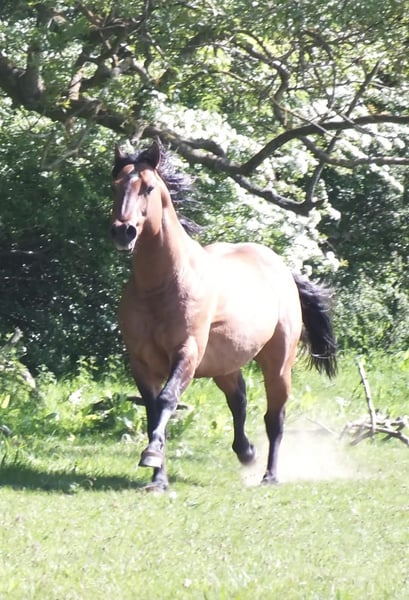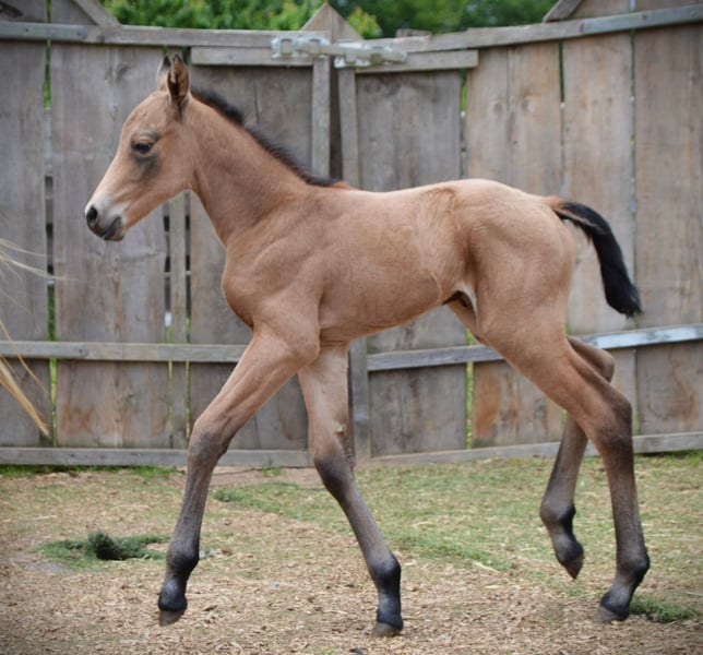 6 Panel N/N Vendo una prometedora yegua de American Quarter Horse, nacida en 2025. Su elegante color buckskin le confiere una apariencia especialmente atractiva. Con una altura de 150 cm, es compacta pero robusta, ideal para el ámbito de todo terreno. La joven yegua de Quarter Horse demuestra una base segura, es muy sociable con las personas, pero sin ser demasiado insistente, y con la adecuada educación es perfecta para jinetes de ocio ambiciosos y familias. Gracias a su carácter amable y su temperamento equilibrado, es fácil de manejar y transmite confianza en cualquier situación. Su constitución robusta y su capacidad de aprendizaje la convierten en una compañera prometedora para el ámbito de todo terreno. Si está interesado, estaré encantado de proporcionar más información y organizar una visita.