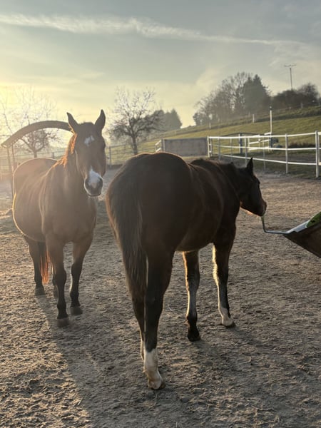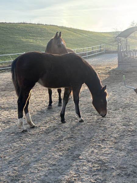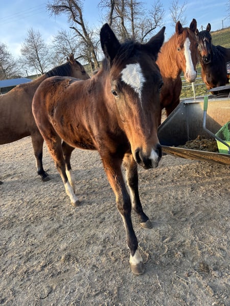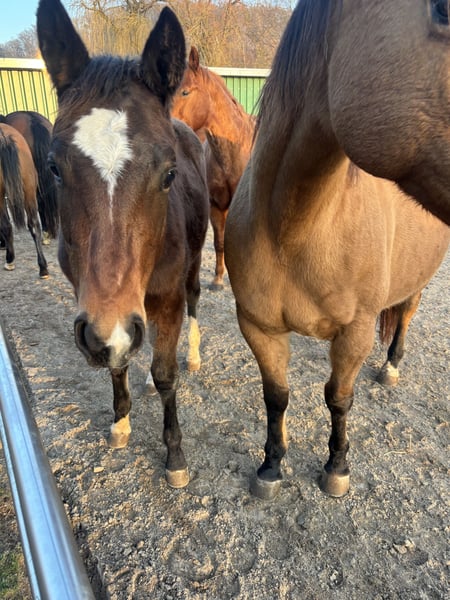 Unsere Walla be a Joker, aka Holly ist ein wunderschönes Fohlen vom April 2025. Sie gibt Hufe, ist zutraulich, läuft gut am Strick kennt das Halfter, bekommt hochwertiges Kraftfutter mit Mineralien, seitdem sie vier Monate alt ist und wird regelmäßig entwurmt. Sie ist Tetanus geimpft. Holly hat eine wahnsinnig tolle Farbe (smoky black) und besitzt das Creme Gen. Sie ist 7 Panel n/n.sie hat gute kräftige Gelenke. Grundsätzlich kann sie sehr gerne bei uns bleiben zur Aufzucht. Sie wird demnächst von ihrer Mama abgestellt und ist vor dem Auszug dem Hufschmied vorgestellt und geimpft. Ihre Eltern sind beide sehr rittig und sie hat Potential als Freizeitpferd, sowie als Tunierpferd.