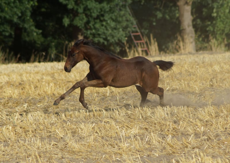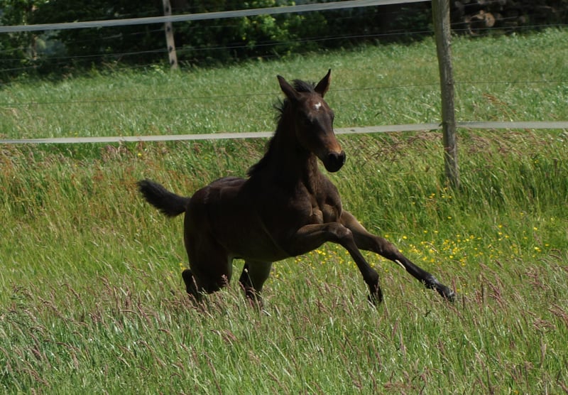 Jacs Electric Smoke alias Lucie est une magnifique pouliche mare issue du célèbre étalon américain de reining A Vintage Smoke, née d’une mère Jacs Electric Spark / Hollywood Dunit. Elle possède une conformation très correcte, des membres droits, une belle ligne du dessus et une carrure solide. Les mouvements de Lucie sont très athlétiques, et elle montre de manière ludique beaucoup de talent pour les stops, les pirouettes et les changements de galop. Lors de la foal show à Wenden, elle a obtenu une note globale de 82,36 % !!! Père : A Vintage Smoke Mère : Dun It In Sparkles, par Jacs Electric Spark / Hollywood Dunit Test génétique : 5 Panel N/N, IMM N/N. *2025 Nos poulains grandissent en troupeau avec leur groupe de naissance, sont régulièrement vermifugés et présentés au maréchal-ferrant. Plus d’informations sur www.brallentin-quarterhorse.de