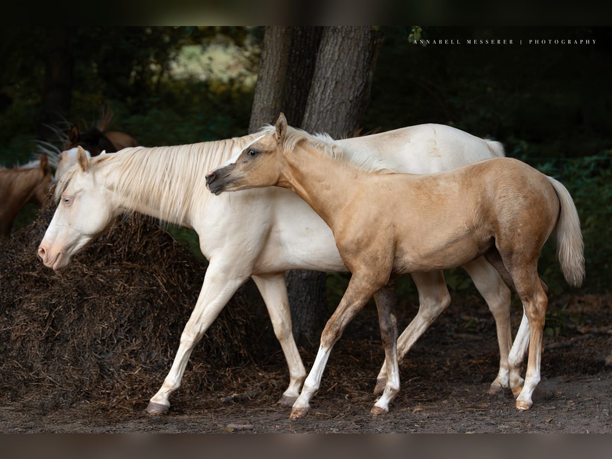 Shining Gun Tari ist eine bildhübsche Quarter Horse Stute, geboren am 04.03.2025, in der Farbe Palomino, mit einem Endmaß von ca. 153 cm. Die AQHA-Papiere liegen vor und genetisch ist sie 5-Panel n/n über die Eltern. Die junge Stute überzeugt durch ein korrektes Gebäude, ein sehr gutes Fundament sowie eine ausgewogene Bemuskelung. Sie ist gesund, geimpft, entwurmt und bestens gepflegt. Aufgewachsen in der Herde und im Offenstall, kennt sie den Umgang mit Tierarzt und Hufschmied und ist halfterführig. Shining Gun Tari bringt einen lieben, neugierigen und menschenbezogenen Charakter mit und zeigt fohlentypisch verspielt ein gelehriges und aufgeschlossenes Temperament. Erste Jungpferde-Disziplin wäre jetzt ideal, um sie weiter zu fördern. Dank ihrer guten Reining-Abstammung (Colonels Smoking Gun, Shining Spark, Frozen Sailor) kann sie später vielseitig eingesetzt werden, sei es als Showpferd oder als Freizeitpartner. Sie wächst unter besten Bedingungen und viel Liebe auf und wird direkt vom Züchter in allerbeste Hände abgegeben.