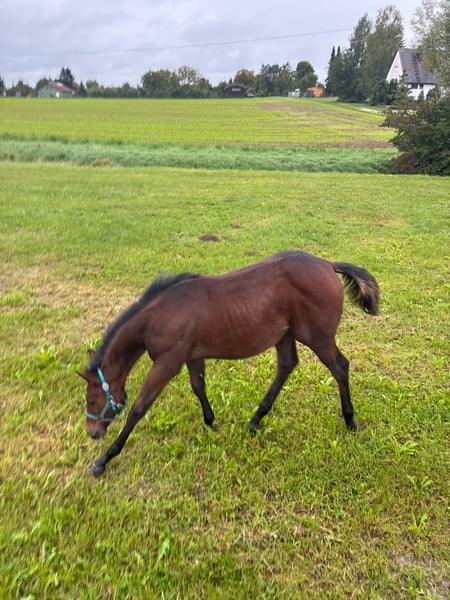 Hallo, ik wil mijn zelf gefokte ruwe diamant verkopen vanwege het verkleinen van mijn voorraad. Celest is een dubbel geregistreerde (AQHA/APHA) merrie, geboren op 7 april 2025, uit mijn merrie Lianis Legacy, door de hengst AM Hot Chester. De dekking vond plaats onder natuurlijke omstandigheden. De hengst staat bij ons op de boerderij en beide ouderdieren kunnen bezichtigd worden. Het kleine meisje beheerst de basis van het veulendiploma, ABC, uitstekend en kan zelfs door mijn zesjarige zoon buiten worden aangevoerd. Ik stuur graag ook video's. De actuele stokmaat is ongeveer 145 cm, de eindstokmaat wordt geschat op 162 cm. In omgang is ze een ware engel, ik heb nog nooit zo'n lief veulen gehad. Huf verzorgen, poetsen, wandelen (zowel in een groep als alleen), een paar minuten longeren, aan de leiding lopen (ook over enkele balken), op de trailer gaan (ze is nog nooit vervoerd), hoefsmid en als handpaard meelopen: met dit prachtige meisje is alles geen probleem. Qua prijs denk ik aan €7500, bespreekbaar. Plaats gaat voor prijs, en over een betalingsregeling kunnen we praten. Meer informatie, video's en foto's, evenals bezichtigingsafspraken, graag via WhatsApp te regelen op +49 15777021543.