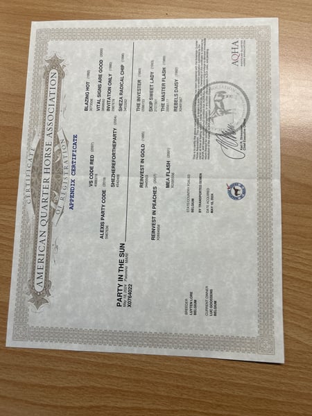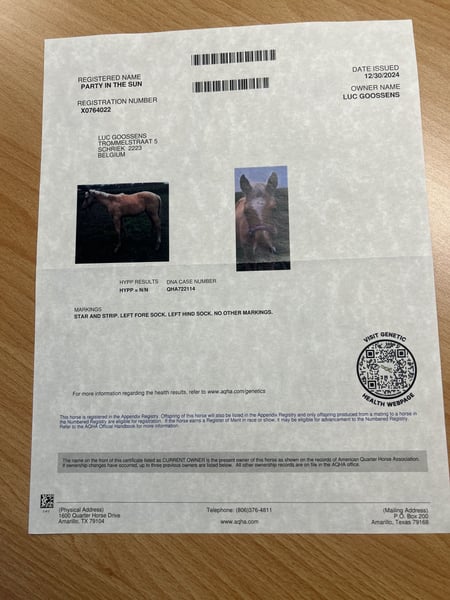 Looking for a 5* home for Sunny AKA Party in the Sun. 2024 mare. Alexis Party Code X reinvest in Peaches. We are looking for a new home for Sunny. She loads onto the trailer and is well-behaved with the farrier. Due to my further studies, I have less time to spend with her. Sunny's full sister is the Dutch champion 2&3y trail in hand open. Vaccination booklet and AQHA papers are all in order.