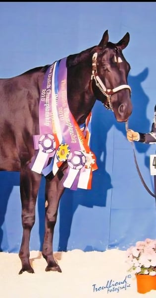 Steelcity Invite ist eine bildhübsche, kompakte und korrekt gebaute Quarter Horse Stute, geboren 2005, in der Farbe Black, mit einem Stockmaß von ca. 154 cm. Sie besitzt einen sehr lieben, sanften und freundlichen Charakter, ist menschenbezogen und im täglichen Umgang äußerst unkompliziert sowie leicht zu händeln. Sie ist halfterführig, kennt die Box mit täglichem Weidegang und steht im mittleren Rang der Herde. Wenn sie alleine ist, neigt sie zum Weben. Aufgrund einer alten Weideverletzung nicht mehr reitbar und wird daher ausschließlich als Zuchtstute mit Schutzvertrag abgegeben. Zähne wurden regelmäßig einmal jährlich kontrolliert, sie ist regelmäßig geimpft und entwurmt und verfügt über eine gute Hufqualität. Genetisch ist sie 4-Panel n/n und GBED n/p. Steelcity Invite wurde früher erfolgreich geshowt und eignet sich bestens für die Zucht. Sie ist eine Tochter von Willy Be Invited. Mütterlicherseits ist sie Zippo Pine Bar gezogen. Auf Wunsch kann sie mit einem Decksprung für 2026 von „Pocochex Shows Heart“ abgegeben werden, wodurch ein garantiert grullo- oder schwarzes Fohlen zu erwarten ist.