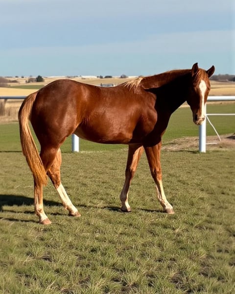 American Quarter Horse Filly – Futurity Prospect 2027 – Outstanding Pedigree For sale is a 20-month-old American Quarter Horse filly, healthy, correctly conformed, and very well developed. She has a calm, affectionate, and cooperative temperament, making her easy to handle daily. ✔️ Direct granddaughter of Spat Olena ✔️ High-quality bloodlines for sport and breeding ✔️ Futurity Prospect 2027 🎨 Sorrel with a blonde mane and tail ✔️ White blaze on the face ✔️ Four white socks Well-raised, with good balance and strong potential for the future. Suitable for sport disciplines such as reining or for high-quality breeding programs. 📍 Location: Italy 📄 Full registration papers available 🩺 Veterinary examination available upon request (at the buyer’s expense) 💰 Excellent value considering pedigree, quality, and prospects 🔒 Sale only to serious and verified buyers 📩 Please send inquiries with complete details American Quarter Horse Filly – Futurity Prospect 2027 – Outstanding Pedigree