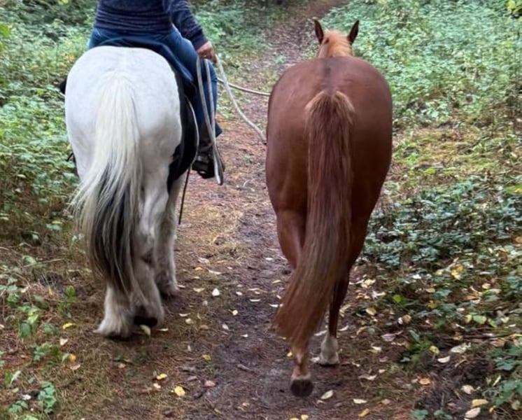 Shiny ist eine Tochter vom DQHA Elitehengst CL Scotch Bar Shine und hat von ihm die super Athletik und sehr raumgreifende Bewegungen mit weitem Untertritt. Daher ideales Showprospekt für alle Ranchklassen. Im letzten halben Jahr wurde sie viel vom Boden gearbeitet, umfassend desensibilisiert und ausgesackt, dabei war sie von Anfang an super cool und völlig unbeeindruckt. Sie kennt das Training auf fremden Anlagen und fährt problemlos Hänger. Außerdem wurde sie vom Boden gefahren und als Handpferd mit ins Gelände genommen. Sie war noch nie krank oder lahm, hat harte Hufe und läuft barfuß, lebt 24/7 im Offenstall, in gemischter Herde und ist mit jedem zu vergesellschaften. Rangniedrig in der Herde. Sie ist komplett durchgeimpft, regelmäßig entwurmt und der Zahnarzt war auch gerade da und hat ihre Wolfszähne entfernt. Das Reiten wurde systematisch, schonend und kleinschrittig begonnen, dabei macht sie alles vorbildlich und möchte gefallen. Insgesamt ist sie sehr personenbezogen, mit viel will to please. Dass sie Stute ist, merkt man ihr nicht an. Sie läuft unterm Sattel artig in allen Gangarten, kennt gebissloses Reiten aber auch die Wassertrense. Endmaß ca. 1.55m Aufgrund ihres Alters ist sie aber insgesamt noch wenig geritten und wird nicht an Anfänger oder Umsteiger verkauft.