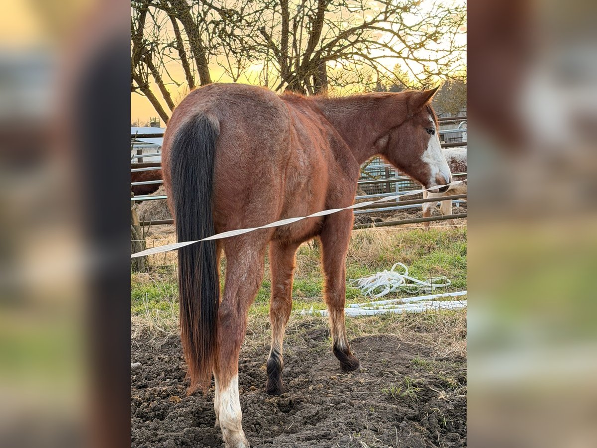 Boons Shining River ist eine junge Quarter Horse Stute mit Half-Quarter Horse Papieren, geboren am 23.04.2024. Sie hat die Farbe Bay Roan Overo, ist aktuell etwa 149 cm groß und wird voraussichtlich ein Endmaß von mindestens 155 cm erreichen. Sie überzeugt durch ihren harmonischen Körperbau, korrekte Stellung und vielversprechende Proportionen und ist ein echter Eyecatcher. Neben ihrer ansprechenden Optik besticht sie vor allem durch ihren lieben, menschenbezogenen Charakter. Die Stute ist ruhig, entspannt und aufgeschlossen, besitzt ein sanftes und freundliches Wesen, ist brav im Umgang, unkompliziert und lernt sehr schnell. Boons Shining River ist gut erzogen und zeigt sich im täglichen Umgang stets angenehm. Die Stute ist gesund, altersgemäß geimpft und entwurmt. Sie kennt die Box mit Weidehaltung und wächst unter besten Bedingungen in Ruhe auf. Ihre Versorgung erfolgt mit hochwertigem Aufzuchtsfutter und guten Mineralstoffen, was ihre Entwicklung optimal unterstützt. In ihrer bisherigen Ausbildung kennt sie bereits das Fohlen-ABC, geht als Handpferd mit ins Gelände, lässt sich problemlos verladen und fährt Anhänger. Sie ist den Umgang mit Menschen und verschiedene Alltagssituationen gewöhnt. Väterlicherseits verfügt sie über eine gute Cuttingabstammung (Vater: Redwhiteandblue Boon), kombiniert mit sehr guten Reiteigenschaften von der mütterlichen Seite. Dadurch eignet sie sich sowohl für den Sport- und Turnierbereich als auch für den Freizeitbereich. Boons Shining River ist ein junges Pferd mit Herz und Zukunft und ideal für jemanden, der ein Jungpferd von Beginn an begleiten, fördern und eine echte Partnerschaft aufbauen möchte. Sie ist ein vielversprechendes Nachwuchspferd für ambitionierte Reiterinnen und Reiter ebenso wie für liebevolle Freizeitreiter.
