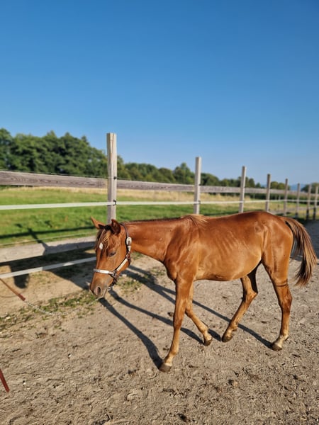 Per il nostro "ANNIE" (ZIPPOS BLUE FIRE) cerchiamo una casa altrettanto da 5 stelle. La splendida puledra Quarter Horse (nata nel 2024) è venuta alla luce presso di noi. I suoi genitori sono anch'essi presenti nel nostro allevamento: Madre: TL Blue Alice (Aint It The Blues) Padre: Zippos King Bar Annie è una vera meraviglia per gli occhi, con un aspetto molto distintivo: Il suo colore del mantello è difficile da descrivere: un marrone/grigio scuro con sfumature di rame sotto il sole. Ha occhi molto marcati, di un intenso grigio-blu scuro, che la rendono un vero colpo d'occhio! Ha una struttura corporea fantastica e un muso da far innamorare! Si muove con una fluidità superiore alla media ed è adatta sia per le competizioni che per il tempo libero. Chi cerca qualcosa di davvero speciale troverà in Annie il perfetto acquisto. Durante il nostro allevamento, ha avuto modo di conoscere tutto ciò che è importante per questa età: lasciare i ferri, essere presentata dal maniscalco, essere spazzolata, lavata, fare passeggiate e essere condotta. Annie possiede un passaporto equino della DQHA e i documenti americani (certificato di registrazione) dell'AQHA. Viene regolarmente sverminata e portata dal maniscalco. Attualmente si trova ancora con sua madre nel nostro allevamento. Può restare qui per continuare la crescita o trasferirsi nella sua nuova casa. Se desiderate conoscere Annie, non esitate a contattarci!