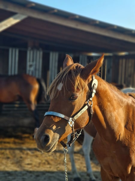 Para nuestra "ANNIE" (ZIPPOS AZUL FUEGO) también estamos buscando un hogar de 5 estrellas. La hermosa yegua Quarter Horse (nacido 2024) nació en nuestra granja. Sus padres también están en nuestra granja: Madre: TL Blue Alice (Aint It The Blues) Padre: Zippos King Bar Annie es una auténtica fiesta para los ojos con una mirada llamativa: El color de su pelaje es difícil de describir: marrón/gris oscuro con un ligero matiz cobrizo al sol. También tiene unos ojos azul grisáceo oscuro muy llamativos, que la convierten en el centro de todas las miradas. Tiene una constitución estupenda y una cabeza para derretirse. Se mueve excepcionalmente bien y es adecuada tanto para competiciones como para el ocio. Así que si estás buscando algo realmente inusual, Annie es un verdadero éxito. Ha aprendido todo lo que se necesita saber a esta edad: Recorte de cascos, presentación al herrador, aseo, ducha/lavado, paseo/conducción. Annie tiene un pasaporte equino DQHA y los papeles americanos (certificado de registro) de la AQHA. La desparasitamos regularmente y la presentamos al herrador. Actualmente sigue siendo criada con su madre. Puede quedarse aquí para seguir criando o mudarse a un nuevo hogar. Si quieres conocer a Annie, escríbenos.