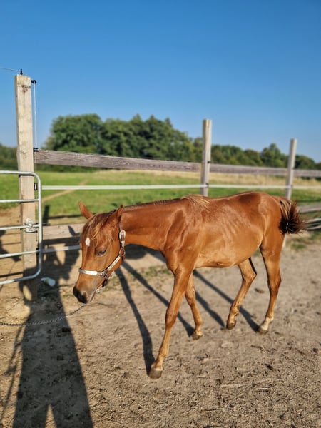 Für unsere „ANNIE“ (ZIPPOS BLUE FIRE) suchen wir ebenfalls ein 5 Sterne Zuhause. Die bildhübsche Quarter Horse Stute (geb. 2024) hat bei uns das Licht der Welt erblickt. Ihre Eltern stehen ebenfalls auf unserem Hof: Mutter: TL Blue Alice (Aint It The Blues) Vater: Zippos King Bar Annie ist eine absolute Augenweide in auffallender Optik: Ihre Fellfarbe ist schwer zu beschreiben: braun/dunkelgrau mit einem leichten Kupferstich in der Sonne. Dazu hat sie sehr markante dunkel-grau-blaue Augen, was sie zu einem echten Eyecatcher machen! Sie hat einen tollen Körperbau und ein Köpfchen zum Dahinschmelzen! Sie bewegt sich überdurchschnittlich gut und ist sowohl für Turniere als auch Freizeit geeignet. Wer also etwas ganz außergewöhnliches sucht landet mit Annie einen Volltreffer. Sie hat bei uns alles kennengelernt, was man in diesem Alter wissen muss: Hufe geben, vorstellen beim Hufschmied, putzen, duschen/waschen, spazieren gehen / führen. Annie besitzt einen Equidenpass der DQHA und die amerikanischen Papiere (certificate of registration) der AQHA. Wir entwurmen regelmäßig und stellen sie beim Hufschmied vor. Sie steht derzeit noch mit ihrer Mutter bei uns in der Aufzucht. Sie kann entweder hier zur weiteren Aufzucht bleiben oder in sein neues Zuhause umziehen. Wenn Sie Annie kennenlernen möchten schreiben Sie uns einfach an.