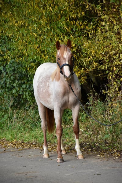 Przepiękna klacz w wymarzonej maści czerwono-roan! Najlepsza linia pochodzenia Cutting/Cowhorse. Jej ojciec, Redwhiteandblue Boon, był mistrzem Futurity w kategorii Cutting dla 3- i 4-letnich koni. Pochodzi od Peptoboonsmal, z matki po Gray Starlight. Jej matka to córka Smart Dually i Genuine Doc, co oznacza, że w jej żyłach płynie także najlepsza stara linia wydajnościowa. Ta roczna klacz jest niesamowicie atletyczna, a jednocześnie spokojna i odważna. Na DQHA Fohlenschau otrzymała ocenę 1A. Ze względu na pochodzenie i świetną budowę, będzie również interesującym kandydatem do hodowli. 4-panel N/N, GBED/N. Zdecydowanie warto ją obejrzeć!