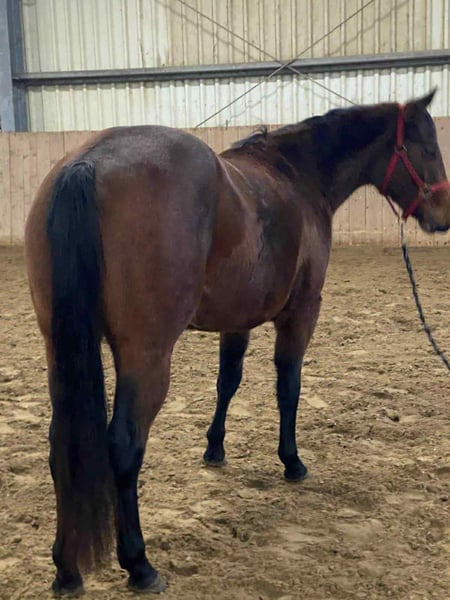 Sally Cant Wait - eine bildhübsche Quarter Horse Stute, geboren am 18.04.2023, in der Farbe bay und mit einem aktuellen Stockmaß von 140 cm. Sie ist ein echter Eyecatcher mit toller Farbe, korrektem Körperbau und einem sehr schönen, stabilen Gebäude. Sally ist altersgerecht entwickelt, gesund und es liegen Röntgenbilder ohne Befund vor. Sie wuchs in einer gemischten Jungpferdeherde auf und kennt sowohl Offenstall- als auch Boxenhaltung. Sie wurde stets hochwertig mit gutem Mineral- und Kraftfutter versorgt. Tierarzt und Hufschmied sind ihr bestens vertraut und sie zeigt sich im täglichen Umgang ausgesprochen brav. Sally besitzt einen lieben, sanften und menschenbezogenen Charakter. Sie ist gutmütig, verschmust, zutraulich und wird regelmäßig gehändelt. Das Jungpferde-ABC, Putzen und Hufegeben bereiten ihr keinerlei Probleme. Sally ist eine tolle Bewegerin und ein sehr interessantes Nachwuchspferd, das später besonders im Reining-Showbereich großes Potenzial mitbringt. Aufgrund ihrer erstklassigen und sehr spannenden Abstammung eignet sie sich auch hervorragend für die Zucht. Sally ist eine Tochter vom erfolgreichen Tricked Out Spook. ein Spooks Gotta Gun Sohn. Ihre Mutter ist eine Smart Spook Tochter. Sie wird mit AQHA-Papieren und Equidenpass abgegeben und ist zudem NRHA European nominiert. Eine vielversprechende junge Stute mit Charme, hervorragender Abstammung und besten Voraussetzungen für Sport und Zucht.