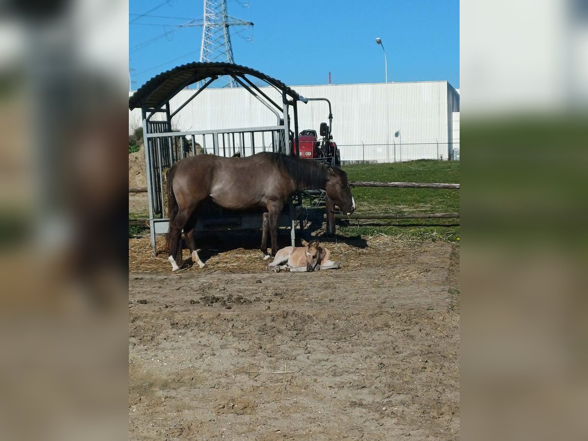 Hier ist die Übersetzung des niederländischen Textes ins Deutsche: --- Hiermit bieten wir unsere Stute mit Fohlen zum Verkauf an. Name: Meritt Pep Heart Stockmaß: 147 cm Geburtsdatum: 24. April 2023 Papiere: Europäischer Pass, AQHA-Papier und FQHA 90% 7-Panel-Testergebnis: Negativ, getestet via EtalonDX Farbe: Grullo und EEaaDnd1 W20n Das Fohlen ist ein Hengst, entweder Grullo oder Smokey Grullo, dies wird noch getestet. EEaaD? und möglicherweise Cream. Er ist 7-Panel-negativ, getestet über die Eltern. 95% FQHA AQHA-Papiere und BQHA-Pass werden für den Verkauf vorbereitet. Hier noch einige Informationen zur Stute: Sie ist eine sehr anhängliche Stute, die in der Herde eine niedrigere Rangposition hat. Sie kommt alle 6-8 Wochen zum Hufschmied. Sie wird regelmäßig entwurmt, basierend auf Kotuntersuchungen. Sie war bereits mehrfach im Anhänger und macht das problemlos. Sie kennt das Anbinden und lässt sich leicht bürsten. Verkaufsgrund: Wir sind eine kleine Zucht und haben beschlossen, weniger Stuten zu halten. Außerdem besteht keine besondere Bindung zu ihr, obwohl sie sehr lieb ist. Zudem haben wir uns entschieden, in diesem Jahr ein Fohlen zu behalten. Der Preis ist inklusive Mehrwertsteuer. Eine Untersuchung ist auf Kosten des Käufers erlaubt. Diese werden nicht erstattet. --- Wenn du noch Anpassungen möchtest, lass es mich wissen!