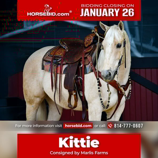 𝐉𝐀𝐍𝐔𝐀𝐑𝐘 ⭐️𝑨𝒍𝒍 𝑺𝒕𝒂𝒓 𝑳𝒊𝒏𝒆𝒖𝒑⭐️ Happening now thru MONDAY | JANUARY 26th - Available EXCLUSIVELY on HorseBid's website! For more details and to register visit: www.Horsebid.com CONSIGNOR CONTACT: Marlis Farms 814-777-0607 LOCATION: Rebersburg, PA BREED: AQHA REGISTERED: Yes REGISTERED NAME: Smart Sunny Cat COLOR: Palomino HEIGHT: 14.3 AGE: 3 GENDER: Mare “SMART SUNNY CAT” aka “Kittie” is a 2022 model AQHA mare standing at 14.3 hands tall. Kittie is an exceptionally well bred mare with a great foundation and kind attitude. She is very gentle and safe, we trust her with the kids to play around on in the arena! Kittie has a nice, balanced walk, trot, canter in the arena and picks up both leads. She’s handy on the ranch, neck reins and has been roped off of. Kittie is also well versed on the trails and has ridden countless miles. She is surefooted and mindful always taking care of her rider! Kittie has been to town and is traffic safe. At home, she is a doll to be around! She is good in a stall and is use to being turned out in a mixed herd. She is easy and quiet for all normal barn tasks and is behaved for the vet, farrier and dentist! Kittie is a reliable, kind, safe mare that can excel in any direction! For more information please contact Mark @ 814-777-0607 (calls only please).