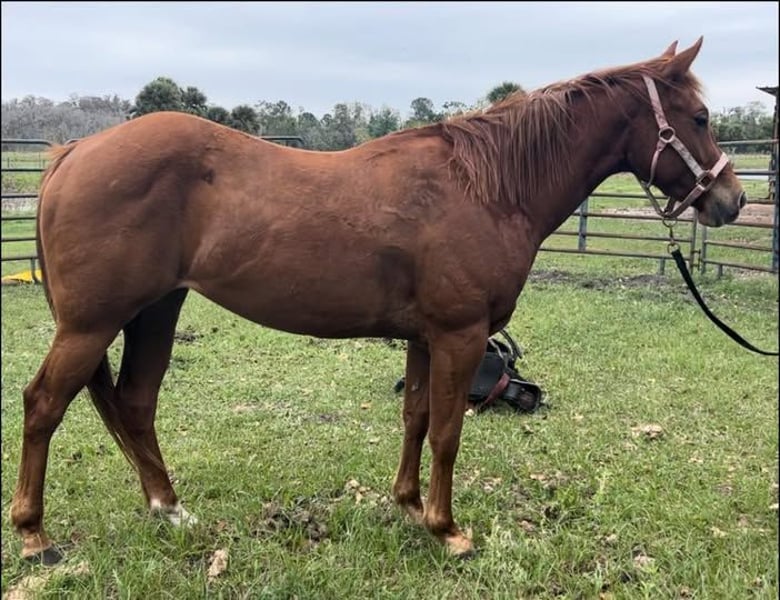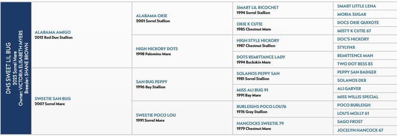 New to market! Lola is a 2023 Sorrel Mare with ties back to iconic names like Smart Little Lena, High Style Hickory, Peppy San Badger, Hancock, and more! Truly could go any direction. While she's bred to go Western Versatility, we have ridden her in an English saddle and she could make a really cute HUS prospect. She has been worked in hand, lunges in the pen, ponies, ties, is great for the farrier, saddles with no issue, and has been lightly started under saddle. Great mind, first to meet you in the paddock, great mover, willing, and ready to move forward in a program. Sound with no vices.