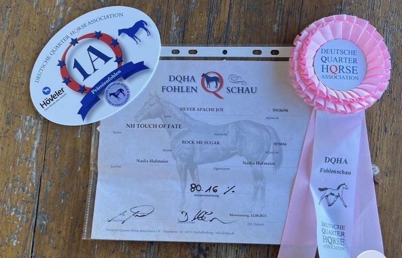 NH Touch Of Fate ist eine außergewöhnliche junge Quarter Horse Stute, die ursprüngliche Foundation-Qualität mit Ausdruck, Substanz und Präsenz vereint. Sie wurde 2023 bei der DQHA-Fohlenschau mit einer 1A-Prämie ausgezeichnet und überzeugt durch korrektes Exterieur, kräftiges Fundament und ein klares, waches Auge. Charakterlich zeigt sich NH Touch Of Fate selbstbewusst, intelligent und sehr präsent. Sie denkt mit, ist aufmerksam und lernfähig, braucht jedoch eine klare, faire und konsequente Führung. Sie ist kein Anfängerpferd, sondern eine Stute für erfahrene Pferdemenschen, die Charakter zu schätzen wissen und eine echte Partnerschaft suchen. Sie kennt Offenstall- und Herdenhaltung, ist halfterführig, gibt brav die Hufe und wurde altersgerecht gefördert. Nicht geritten. Genetisch überzeugt sie zusätzlich durch ihre seltene Farbe Silver Dapple sowie einen 6-Panel-Test n/n. Perspektiven: NH Touch Of Fate eignet sich hervorragend für: • Ranch Riding / Ranch Versatility • Cowhorse-nahe Ausbildung • ambitionierte Freizeit • oder als hochwertige Foundation-Zuchtstute Diese Stute bringt nicht nur Qualität, sondern auch Tiefe mit – ein Pferd mit Persönlichkeit, das bei richtiger Förderung weit über Durchschnitt hinauswachsen kann. Abgabe ausschließlich in fördernde, erfahrene Hände. Weitere Informationen, Videos und Pedigree gerne auf Anfrage. Preis ist Verhandelbar