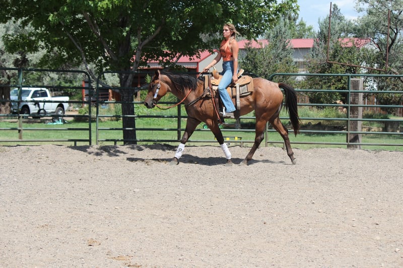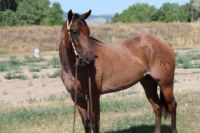 "AVAILABLE ON ONLINE HORSE AUCTION AT www DOT MagicHorseAuction DOT com BIDDING OPEN NOW thru TUESDAY | AUGUST 5TH! - BUY IT NOW AVAILABLE! *Final price will be determined on auction site* CONSIGNOR CONTACT INFO: Dynamite Horses 970-632-3644 LOCATION: Fort Collins, CO "★★ RED CEDAR HERO ★★ 3-Year-Old AQHA Bay Roan Mare | Handy • Broke • Ranch Versatility Prospect Red Cedar Hero is a 3-year-old AQHA bay roan mare with a sharp mind, exceptional start, and an all-business attitude under saddle. With her strong foundation, stylish color, and impressive handle, she’s well on her way to being an outstanding all-around or ranch versatility prospect. This mare is built right and trained right. She’s already put in plenty of miles — from long arena sessions to navigating busy town settings. She’s calm and confident around traffic, bikes, dogs, strollers, and unpredictable environments, taking everything in stride with a level head and quiet focus. Under saddle, Red Cedar Hero has an excellent handle. She has a smooth, balanced walk, jog, and lope, moves easily off leg pressure, and is naturally soft in the bridle. She’s developing a stylish spin, backs with ease, sidepasses, and has a confident, smooth stop that makes her a pleasure to ride. She neck reins cleanly, stays collected, and is well on her way to being a finished horse. She’s also been started around cattle — she’s seen time in the sorting pen, has had a rope thrown off her, and shows the kind of feel that would suit ranch riding, versatility work, or cow horse training. She’s confident around flags, tarps, and obstacles and always steps up to the challenge. Red Cedar Hero is the kind of horse that gets noticed — not just for her eye-catching bay roan color, but for her attentive attitude and natural athleticism. She’s willing, trainable, and shows up to work with a good mind and a lot of try. Whether you’re looking for a ranch partner, a versatility mount, or a young, broke mare with a bright future, Red Cedar Hero is the total package and ready to go in any direction. Come meet her in person — she’s the kind of mare that only gets better the more you ride her.