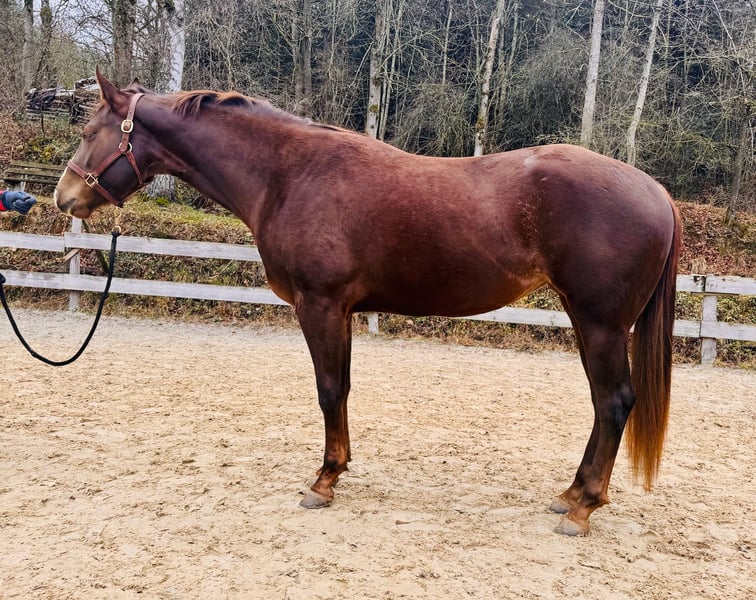 Rough Romance, mare by Unexpected X Already Too Sleepy, chestnut, born March 2023, approximately 1.60 m tall, unbroken · Unpolished gem! Not yet ridden or lunged in a bridle · Correct conformation · Beautiful movement, talented · Very sweet and friendly nature · Knows the usual handling skills (tacking up, grooming, leading) · Has been regularly shod · Regularly wormed and vaccinated About the sire: Unexpected comes from one of the most successful all-around lines in the USA: full brother to "The Rock" – 2-year-old World Champion Western Pleasure, full brother to "Justa Creepin" – Congress Reserve Champion & Superior WP, full brother to "Suddenly Style N" – dam of the renowned "Gone Viral" AQHA World Champion, 4-time NSBA World Champion, 2-time Congress Champion, 2-time Reserve Congress Champion. The dam line features "Already Too Sleepy" by "Too Sleepy To Zip" and "Invitation Only." The full siblings of the dam are Reserve Congress Champion in Western Pleasure, top five at Congress WP, and have earned over $20,000 USD.