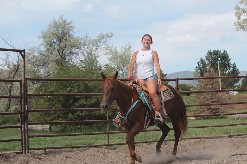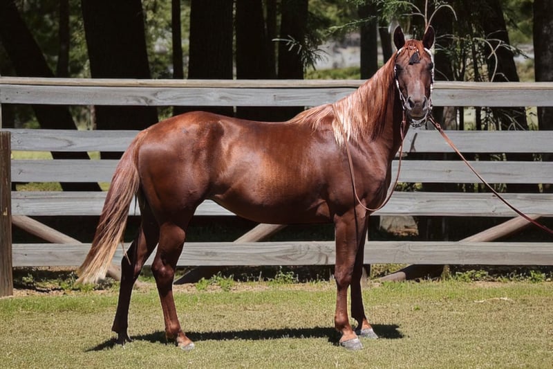 "AVAILABLE ON ONLINE HORSE AUCTION AT www DOT MagicHorseAuction DOT com BIDDING OPEN NOW thru TUESDAY | AUGUST 19TH! - BUY IT NOW AVAILABLE! *Final price will be determined on auction site* CONSIGNOR CONTACT INFO: Dynamite Horses 970-632-3644 LOCATION: Fort Collins, CO ★★ DAHLIA ★★ Registered as MMB Peppys San Hixs | 3-Year-Old Liver Chestnut Mare | Kind-Hearted, Versatile, and Unshakably Trustworthy. Dahlia is a gorgeous 3-year-old liver chestnut mare with a shining coat, a calm mind, and an incredibly generous heart. This young mare is a standout not only for her eye-catching color and conformation but for her steady disposition, remarkable trainability, and sweet-natured personality. She’s the kind of horse that builds confidence in her rider, no matter their age or experience. From the ground up, Dahlia has been an absolute pleasure to develop. She’s intelligent, willing, and has the demeanor of a horse well beyond her years. She meets you at the gate every morning with a soft eye and a friendly attitude, eager for attention and connection. She stands quietly to be brushed and bathed, loads and unloads easily, and maintains excellent ground manners in all settings. Dahlia enjoys the grooming process and thrives on human interaction, making her a true barn favorite with her puppy-dog presence. She knows an impressive set of groundwork maneuvers, including side passing to and away from the handler, spinning on cue, lunging both on and off the lead, and even following you freely with no halter or rope. She also carries herself with natural rhythm and softness, and is happy to learn and engage. Under saddle, Dahlia has been started in western pleasure and is showing excellent promise. She has a beautifully collected jog and a naturally slow, balanced lope. She responds softly to cues, has a clean backup and stop, and has begun work on rollbacks and sliding stops. She’s also had a rope swung off her and has been introduced to moving cattle — always showing composure and curiosity. She is light in the bridle and confident in new settings. Dahlia has also spent time in an English saddle and has gone over cavalettis with impressive poise and awareness. Her body control and natural cadence give her the foundation to develop into a lovely all-around prospect for multiple disciplines. While she excels in the arena, Dahlia truly comes to life on the trail. She’s as brave as she is reliable, confidently riding out alone or with a group. She’s been exposed to town traffic, barking dogs, passing bikes, strollers, runners, and even loud trains — all handled with the same calm demeanor. She’s been taken to the gas station in just a halter and led the way without hesitation. Her confidence outdoors makes her an ideal mountain or trail partner, and she’s been trusted with riders of all levels, including young lesson students. One of our youngest riders even took her out alone bareback — a true testament to her gentle and grounded nature. Dahlia has also been introduced to a wide variety of obstacle and desensitization work. She’ll carry a flag, drag a tarp, walk over tarps, push a ball, and tackle anything you point her at. She’s solid, thinking, and incredibly safe. This is one of the most trustworthy and unshaken young mares we’ve ever had the pleasure of working with. She’s dependable, affectionate, and already has the qualities of a lifelong partner. Whether you’re looking for a calm trail mount, a foundation for western or English performance, or a family-safe horse with personality and heart, Dahlia is the total package. Watch her extensive video to see her in action and feel free to reach out with any questions or to set up a time to meet her. She’s truly a special one.