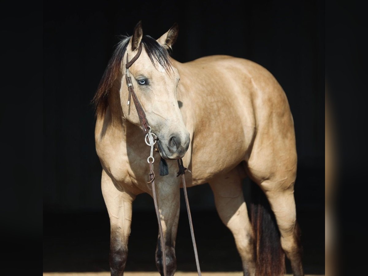 Allie, yegua de 3 años, de 14.3 manos, de color buckskin, de la raza AQHA.