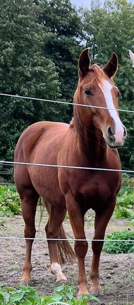 American Quarter Horse Stute – Cielo Pretty Dunit - Geburtsjahr 2022 v. Streakies Cielo a. Dunits Pretty Woman Zum Verkauf steht eine fuchsfarbene American Quarter Horse Stute mit einprägsamer hübscher Blesse, geboren im Jahr 2022. Sie besticht durch ihren treuen Blick. Daisy ( Cielo Pretty Dunit ) ist eine aufmerksame und freundliche Jungstute, sie ist mit Zuchtstuten und weiteren Fohlen artgerecht aufgewachsen, dann in einer Jungpferdeherde groß geworden, sie hat ein gutes Sozialverhalten im mittleren Rang. Seit drei Monaten befindet sich in einer Jungpferdeausbildung und wurde schonend angeritten. Daisy zeigt sich arbeitsfreudig, gelehrig und denkt mit. Sie kann sportlich sein, lässt aber auch Anfänger auf sich sitzen. Sie hat ein stabiles Fundament und ist trittsicher auch auf festem, unebenem oder auch auf Schneeboden;) sie deckt daher auch größere Reiter gut ab. Aktuell 148. Endmaß wird ca 152 werden. Sie ist bestens geeignet für Reiter, die ein zuverlässiges und folgsames Pferd suchen, das sowohl im Freizeitbereich als auch im Westernsport überzeugen kann. Ihr Alter bietet viel Potenzial für eine individuelle weitere Ausbildung und Entwicklung. Bei uns werden alle Pferde vor und während der Ausbildung regelmäßig gesundheitlich gescheckt! Osteopathischer Check und tierärztliche Untersuchung ergaben makellose Ergebnisse. Röntgenbilder sind vorhanden. Zähne sind gemacht, brav beim Schmied. Entwurmungen und Impfungen sind selbstverständlich. Daisy wartet arbeitsbereit auf ihr neues Zuhause! Bei Interesse stehe ich gerne für weitere Informationen und eine Besichtigung zur Verfügung. Kontaktieren Sie mich, um diese besondere Stute kennenzulernen! Daisy kommt direkt vom Züchter. Weitere Pferde unterschiedlichen Alters, Geschlechts, Ausbildungsstandes sind bereit für ihren neuen Besitzer. Kontaktieren Sie mich gerne, um das passende Quarter Horse für die zu finden!