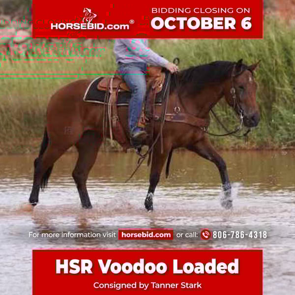 🍂 𝓐𝓾𝓽𝓾𝓶𝓷 𝑨𝑳𝑳 𝑺𝑻𝑨𝑹 𝑳𝑰𝑵𝑬𝑼𝑷 🍂 Happening now thru MONDAY | OCTOBER 6th - Available EXCLUSIVELY on HorseBid's website! For more details and to register visit: www.Horsebid.com CONSIGNOR CONTACT: Tanner Stark LOCATION: Canyon, TX BREED: AQHA REGISTERED: Yes REGISTERED NAME: HSR Voodoo Loaded COLOR: Bay HEIGHT: 14.3 AGE: 3 GENDER: Mare This classy 3-year-old mare has all the makings of a top cow horse prospect. She’s been used on the ranch and already carries herself with the kind of confidence and handle you only get from real-world experience. She has a solid cow horse foundation—quick-footed, naturally cowy, and soft in the bridle—showing all the raw talent you’d want to finish out into the show pen or keep as a handy using horse. On top of her cow horse ability, she would also make a tremendous rope horse prospect. She’s got plenty of speed, the athleticism to get across the pen, and the good mind to handle the pressure. Extra willing with a big heart, she’s the kind that gives you 100% every ride. Sound, straight-legged, and correct in her build, she’s made to last and has the mind and ability to excel in multiple arenas. Whether you want to take her to the ranch versatility classes, finish her as a rope horse, or continue her down the cow horse path, this mare has the foundation, talent, and try to go far.