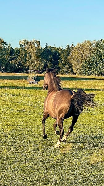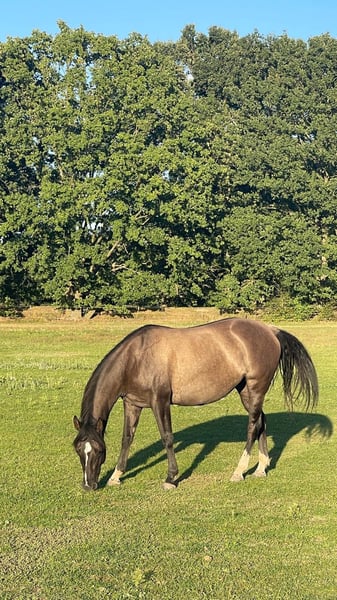 Madonna ist eine 4-jährige Quarter-Horse-Stute OHNE Papiere in der Farbe grullo. Beide Elternteile sind aber bekannt, die Mutter steht ebenfalls bei uns. Die Mutter Evita ist von Cody‘s Fine Girl und Black Cody‘s Jack. Der Vater von Madonna ist TD Im a Magic Chip. Madonna wurde dreijährig angeritten, stand dann über den Winter nochmal auf Koppel und ist seit diesem Jahr im März wieder 2x pro Woche in Arbeit. Sie läuft auf dem Platz alle drei GGA, kennt die üblichen Umgangsregeln, läuft barhuf, war viel im Gelände allein und mit anderen Pferden zusammen spazieren, hat beim Führen und an der Longe auch schon Kinder getragen (da ich therapeutisch arbeite, liegt da einfach der Fokus). Ihre Bewegungen sind absolut sitzbequem, selbst die kleineren Kinder sitzen auf ihr wie auf einem Sofa. Sie ist sowohl western als auch klassisch geritten und kennt und besitzt auch dementsprechend einen Western-sowie einen Dressursattel. Eingeritten wurde sie gebisslos, mittlerweile haben wir sie auch ans Gebiss gewöhnt, was sie gut annimmt. Madonna steht bei uns im Offenstall in einer kleinen gemischten Herde (insgesamt 5 Pferde), sie wünscht sich auch in Zukunft definitiv mindestens einen Spielpartner. Sie ist Hunde gewöhnt und bestens sozialisiert. Hat keine Angst vor großen Fahrzeugen, wie Landmaschinen. Seit Anfang November befindet sie sich nochmal in Beritt, um ihr einfach ein bisschen Routine näherzubringen und sie auch bei schlechtem Wetter vorstellen zu können. Sie ist wirklich ein ganz tolles Pferd, mutig, willig und wunderschön. Sie möchte auch gefallen, ist gern dominant und wünscht sich eine feste Bezugsperson. Hat sie so jemanden gefunden, tut sie alles für denjenigen. Sie hat ihren Menschen verdient und wenn Bedarf besteht, kann auch ihr Sattel mit ausziehen. Sie ist ca 1,55m groß und relativ kompakt. Sie steht in 14913 und bei ernsthaftem Interesse freuen wir uns über direkten Kontakt unter der 015758885560 (Nadine Hackel) Ich beantworte dann gern Fragen per Anruf, Nachricht oder WhatsApp. Auch könnte ich dann noch ein Video vom anreiten schicken. TüV liegt noch nicht vor. Sie war nie krank! Hier fehlt einfach die Zeit, das ist auch der Grund, weshalb wir sie abgeben. Sie wünscht sich schon auch gern die Nummer 1 zu sein. Preis liegt bei 9.999 € und ist bei entsprechendem passenden Menschen auch verhandelbar. Privatverkauf Es gilt der Haftungsausschluss