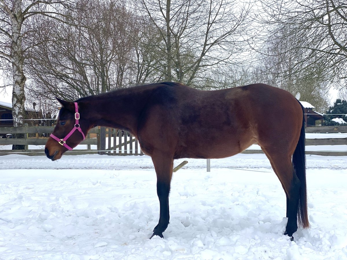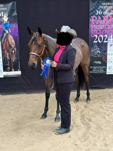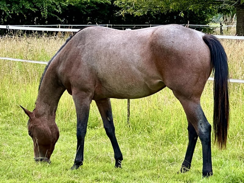 On behalf of: A very friendly, calm, and talented 4-year-old mare in bay roan, approximately 1.60 m tall, by Itsasouthernimpulse (son of Its A Southern Thing) out of a Radical Rodder dam line, is for sale. Ellie has already competed at multiple shows as a two-year-old, earning top placings in Hand in Trail, and has also gained experience in longe line and halter classes. She has received solid basic training and is very suitable for all-round classes. Even when ridden alone or in company, she proves to be confident and calm; riding her on the highway is no problem. If you are looking for a young, gentle horse with a willing attitude and talent, Ellie will surely bring you joy. We are offering Ellie due to lack of time and wish her a home with heart and horse sense, where her potential can be further developed. She is very easy to handle, absolutely not spooky, and not standoffish. Currently, Ellie is in training in Central Hesse and can be tried there. Further photos and videos of her riding are available upon serious inquiry. Naturally, she is shoeing and loading safe, regularly vaccinated for competitions, and wormed on a regular basis.